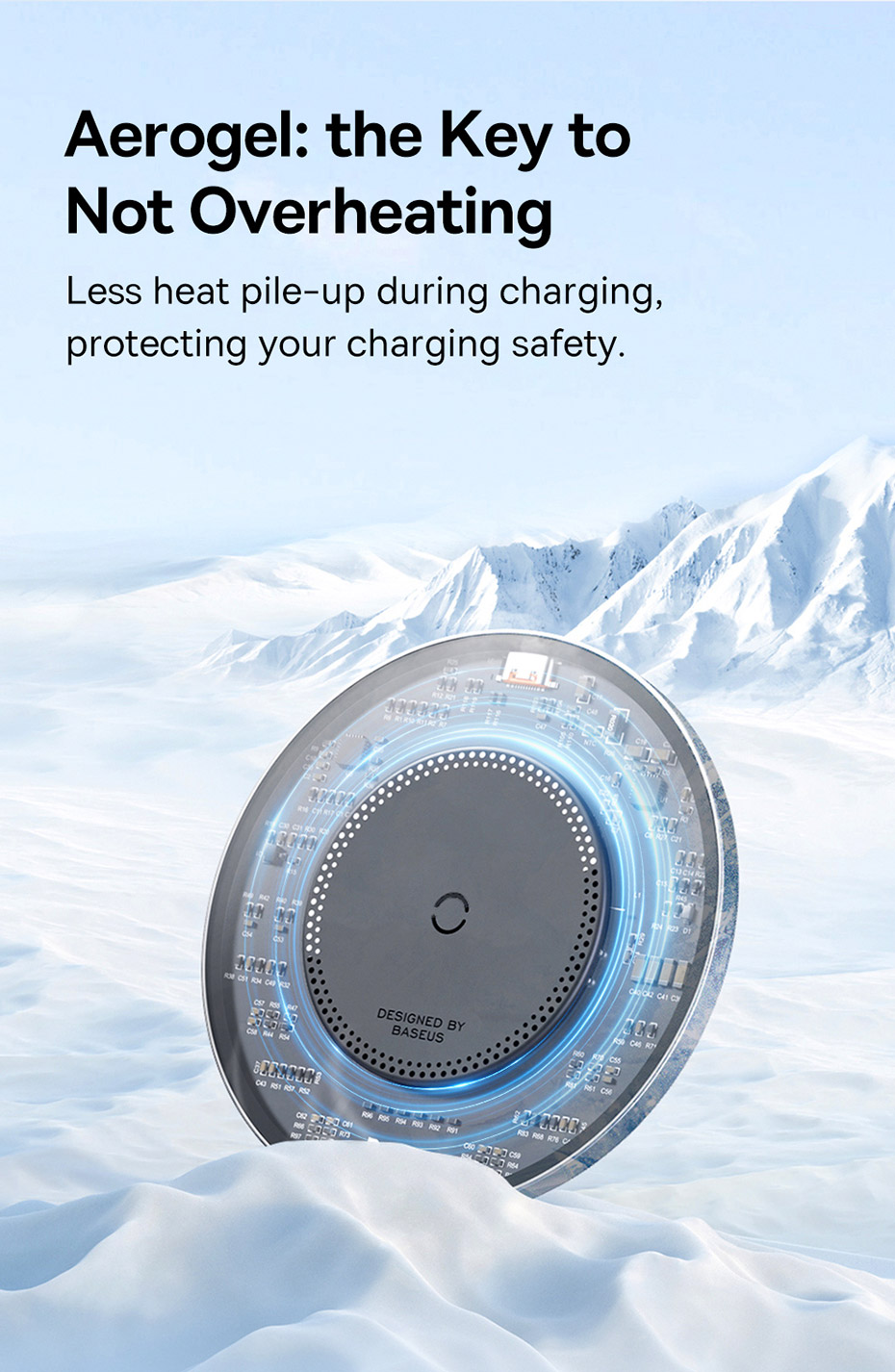 ❄️ CÔNG NGHỆ AEROGEL MÁT LẠNH: Lần đầu tiên tích hợp vật liệu cách nhiệt Aerogel (sử dụng trong hàng không vũ trụ) vào đế sạc. Giúp tản nhiệt hiệu quả, duy trì nhiệt độ sạc thấp, bảo vệ pin điện thoại của bạn khỏi bị chai và đảm bảo an toàn tuyệt đối.