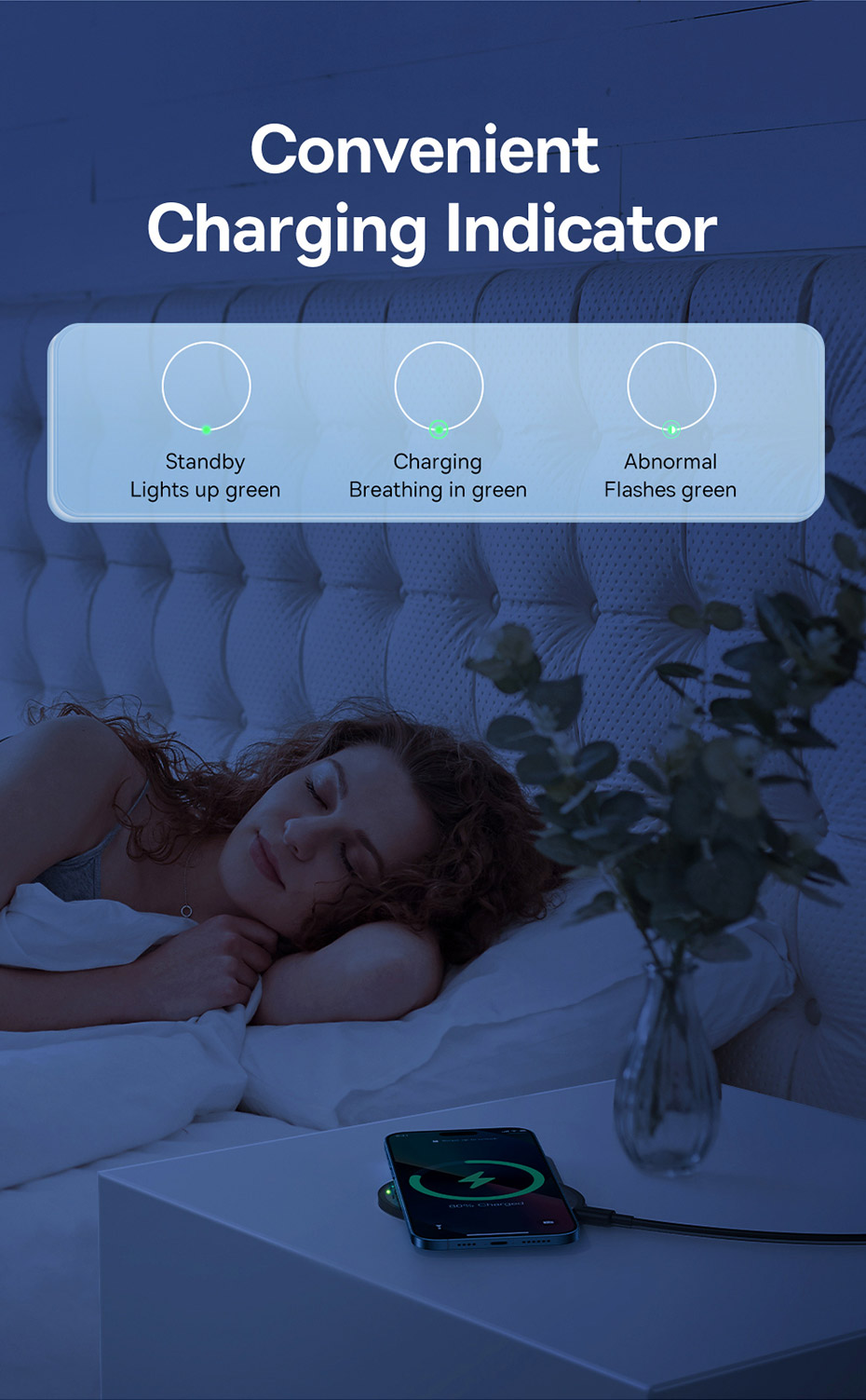 Sạc Nhanh Không Dây 15W: Tương thích nhiều mức sạc 15W/10W/7.5W/5W.
