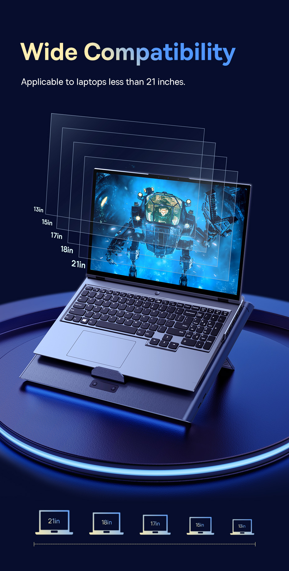 Tương Thích Rộng Rãi: Phù hợp với nhiều kích thước laptop khác nhau.