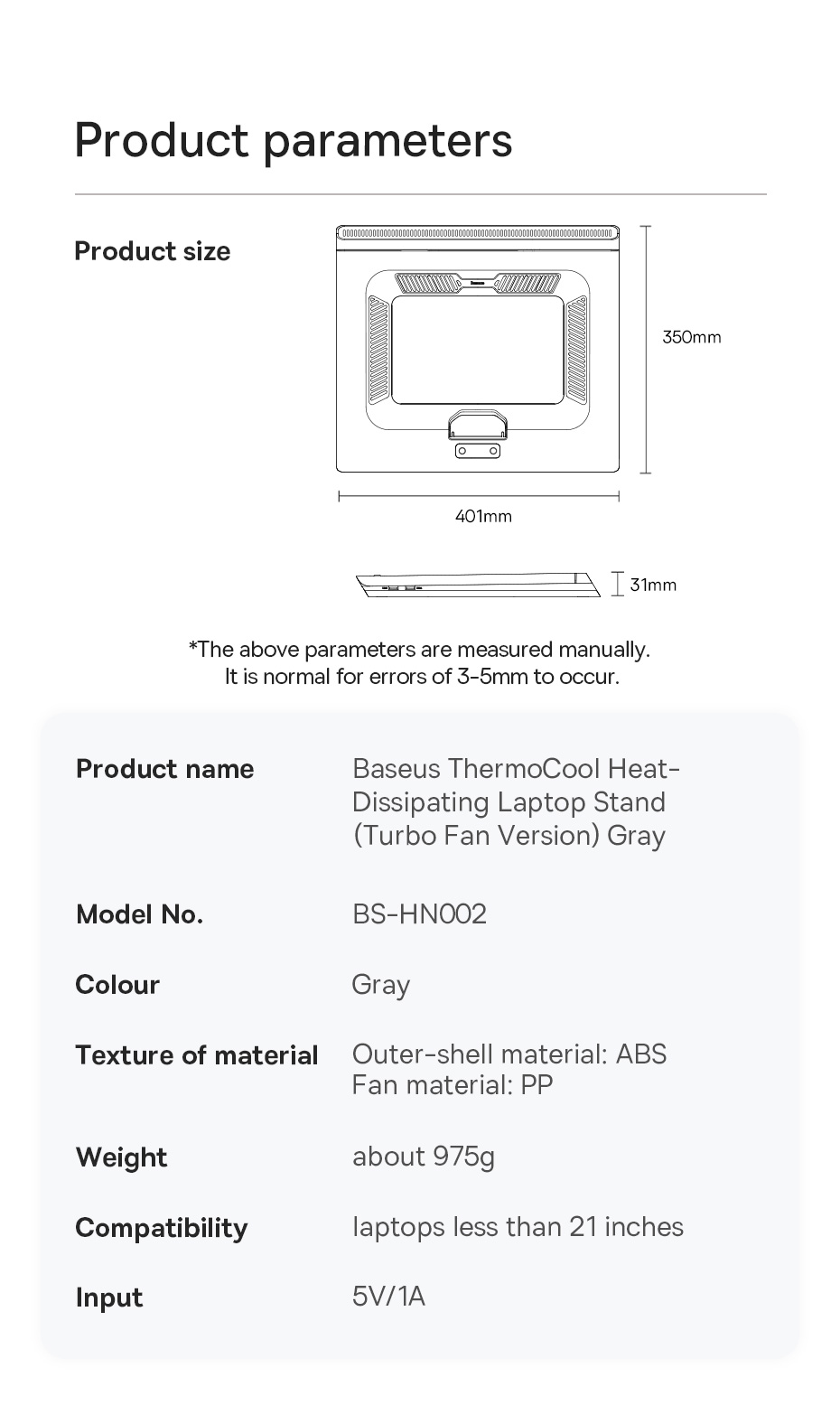 | Tên | Baseus ThermoCool Heat-Dissipating Laptop Stand |