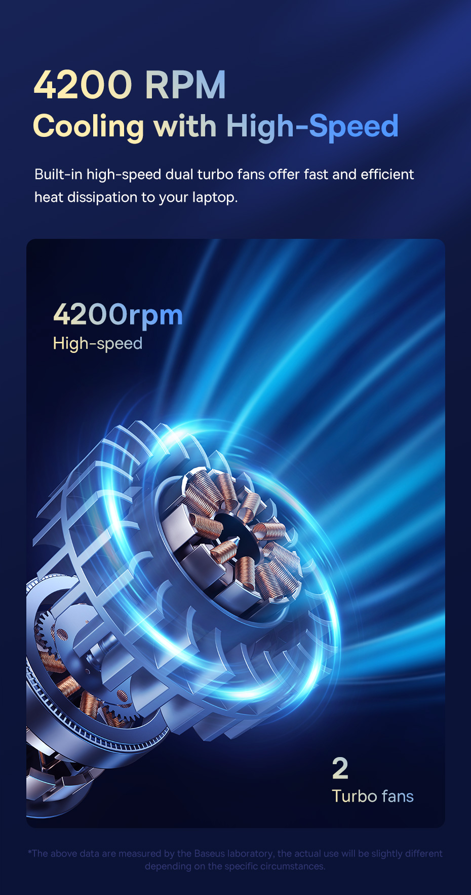 Quạt Turbo Kép 4200RPM: Tản nhiệt chủ động, làm mát hiệu quả.