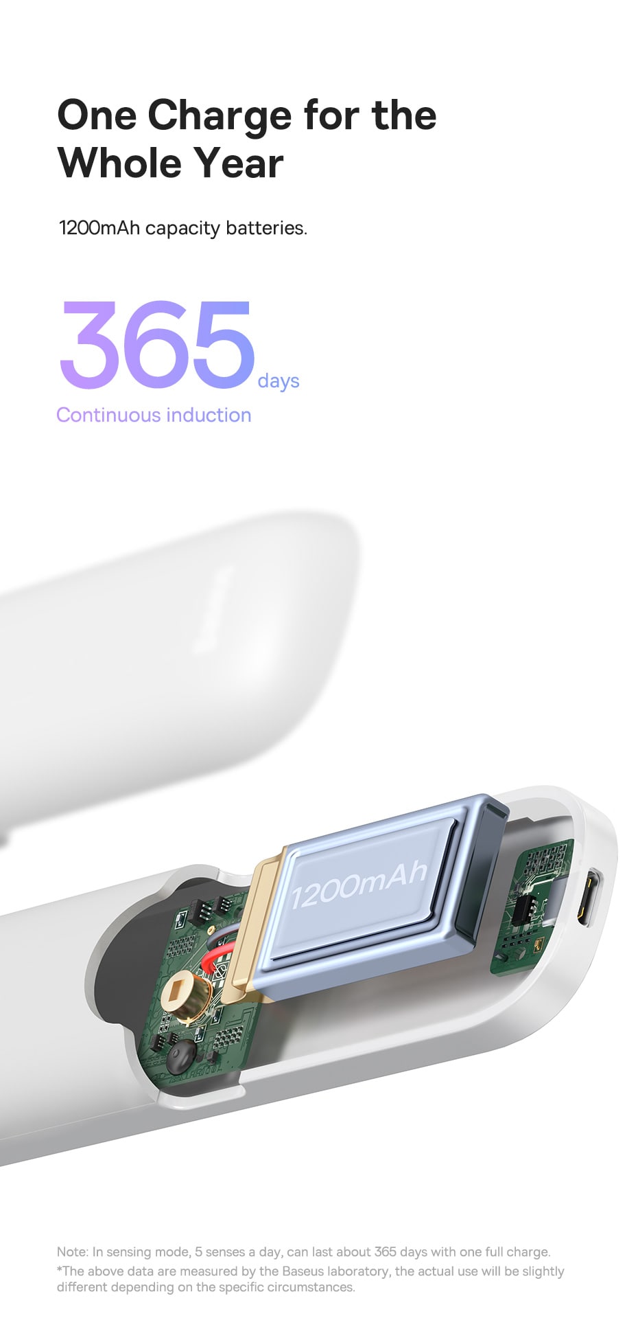 Thời Lượng Pin Lên Đến 365 Ngày: Dung lượng pin 1200mAh, sạc qua cổng Type-C.