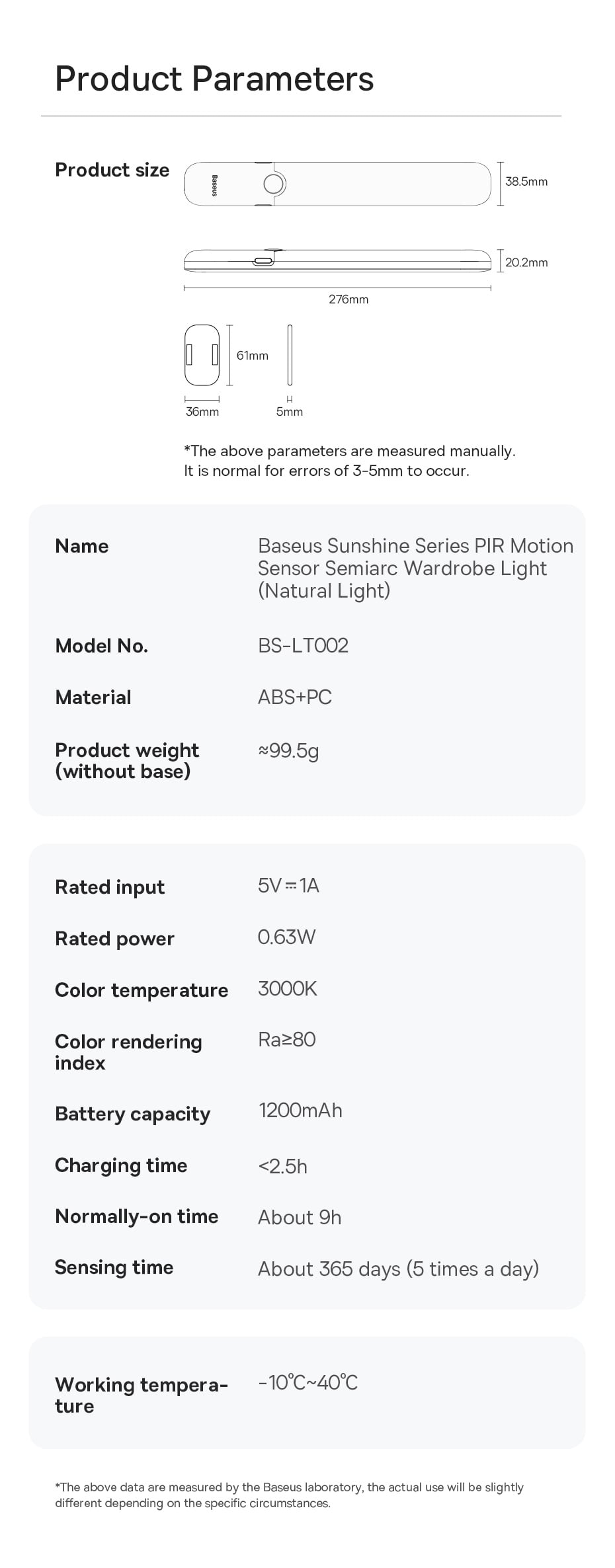 | Tên | Baseus Sunshine Series PIR Motion Sensor Semiarc Wardrobe Light |
