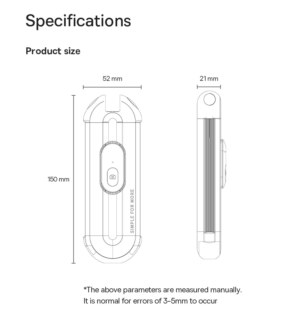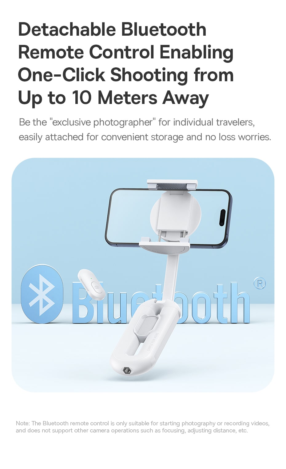 🔵 Remote Bluetooth Tháo Rời Tiện Lợi: Tự do sáng tạo khung hình với remote Bluetooth có thể tháo rời. Dễ dàng chụp ảnh từ xa lên đến 10 mét mà không cần hẹn giờ hay nhờ người khác bấm máy.