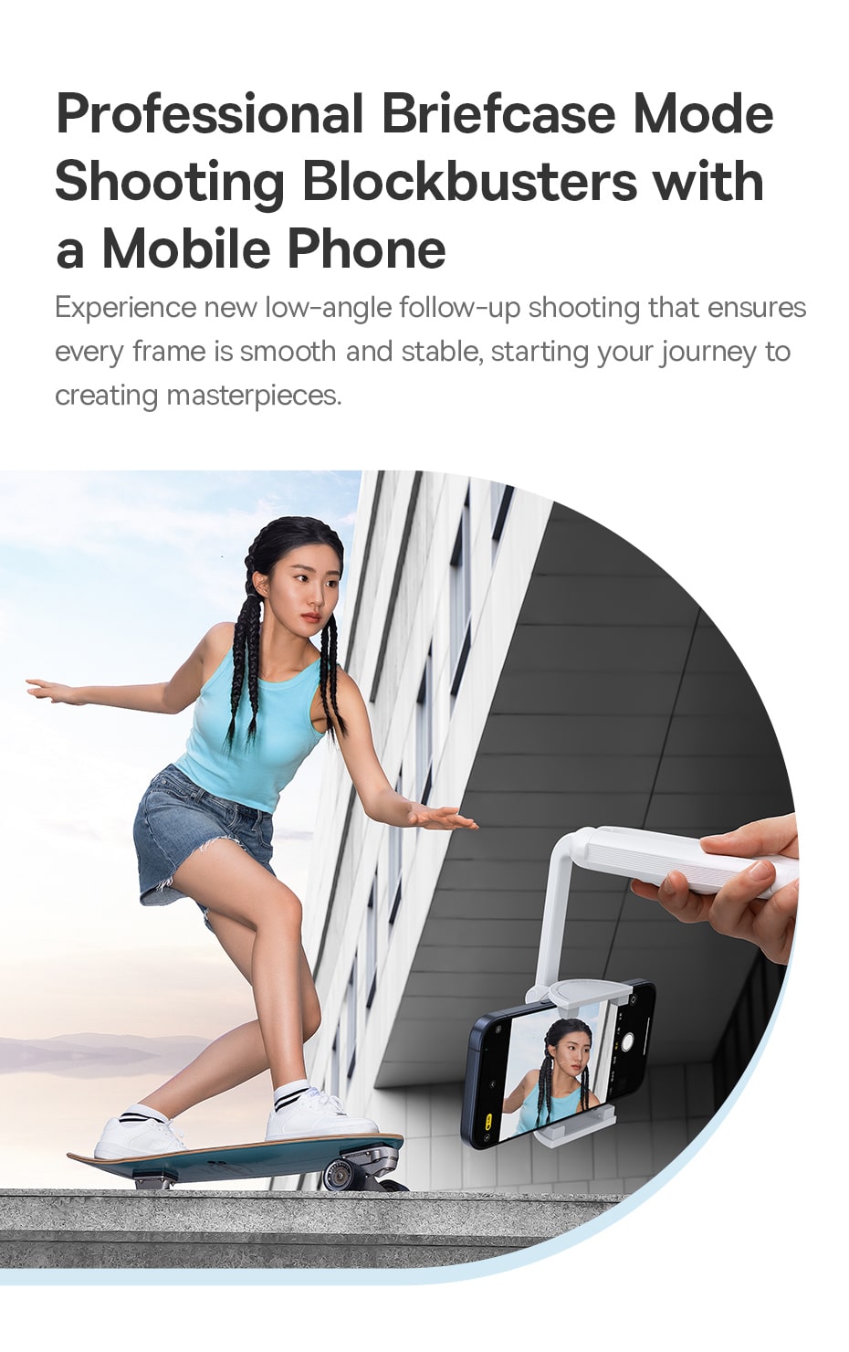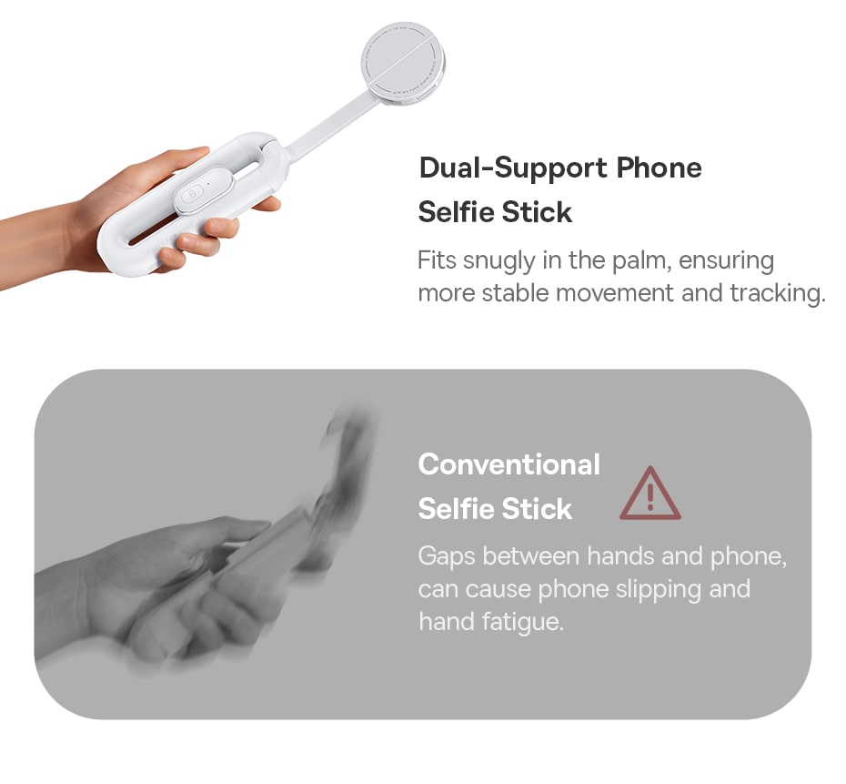 🦾 Tay Cầm Trợ Lực Kép, Chống Rung Cực Tốt: Thiết kế tay cầm trợ lực kép độc đáo, tạo ra một điểm tựa vững chắc, giúp bạn quay video mượt mà, ổn định và tracking chủ thể dễ dàng hơn, giảm thiểu tối đa rung lắc khi di chuyển.