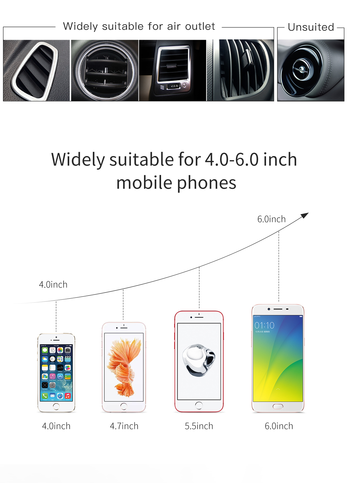 🚗 CHÂN KẸP CỬA GIÓ VỮNG CHÃI: Thiết kế chân kẹp thông minh bám chắc vào lá tản nhiệt của cửa gió ô tô. Lớp đệm silicon bên trong không chỉ chống trầy xước cho cửa gió mà còn tăng độ ổn định, chống rung lắc tối đa.