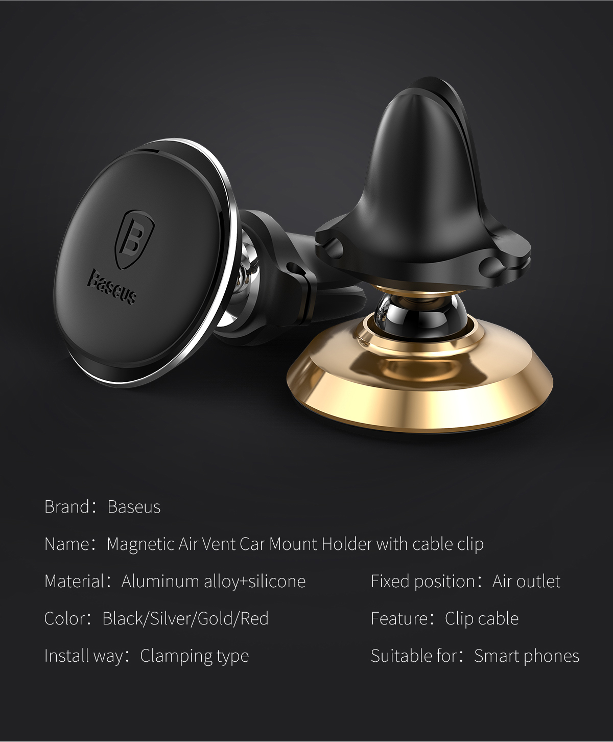 | Tên | Giá Đỡ Điện Thoại Xe Ô Tô Baseus Magnetic Air Vent Car Mount Holder with cable clip |