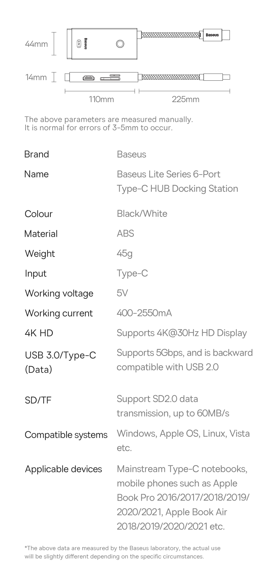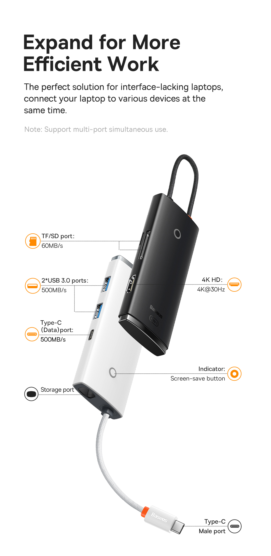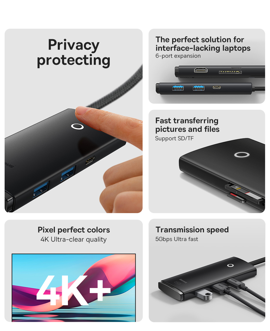 | Tên | Baseus Lite Series 6-Port Type-C HUB Docking Station |