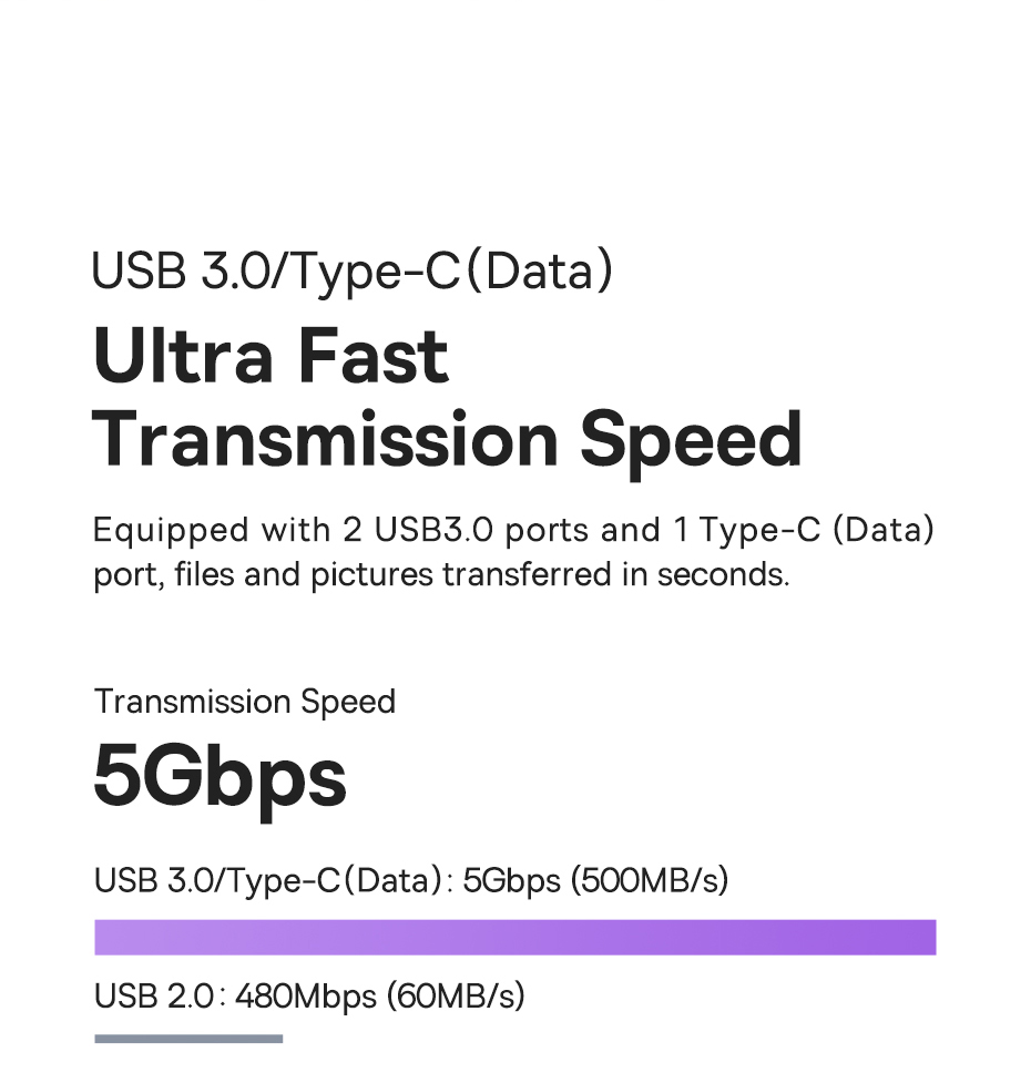 ⚡ USB 3.0 TỐC ĐỘ CAO - SAO CHÉP TRONG TÍCH TẮC: Trang bị 2 cổng USB 3.0 với tốc độ truyền tải lên đến 5Gbps (nhanh gấp 10 lần USB 2.0). Bạn có thể chép một bộ phim 1GB chỉ trong vài giây.