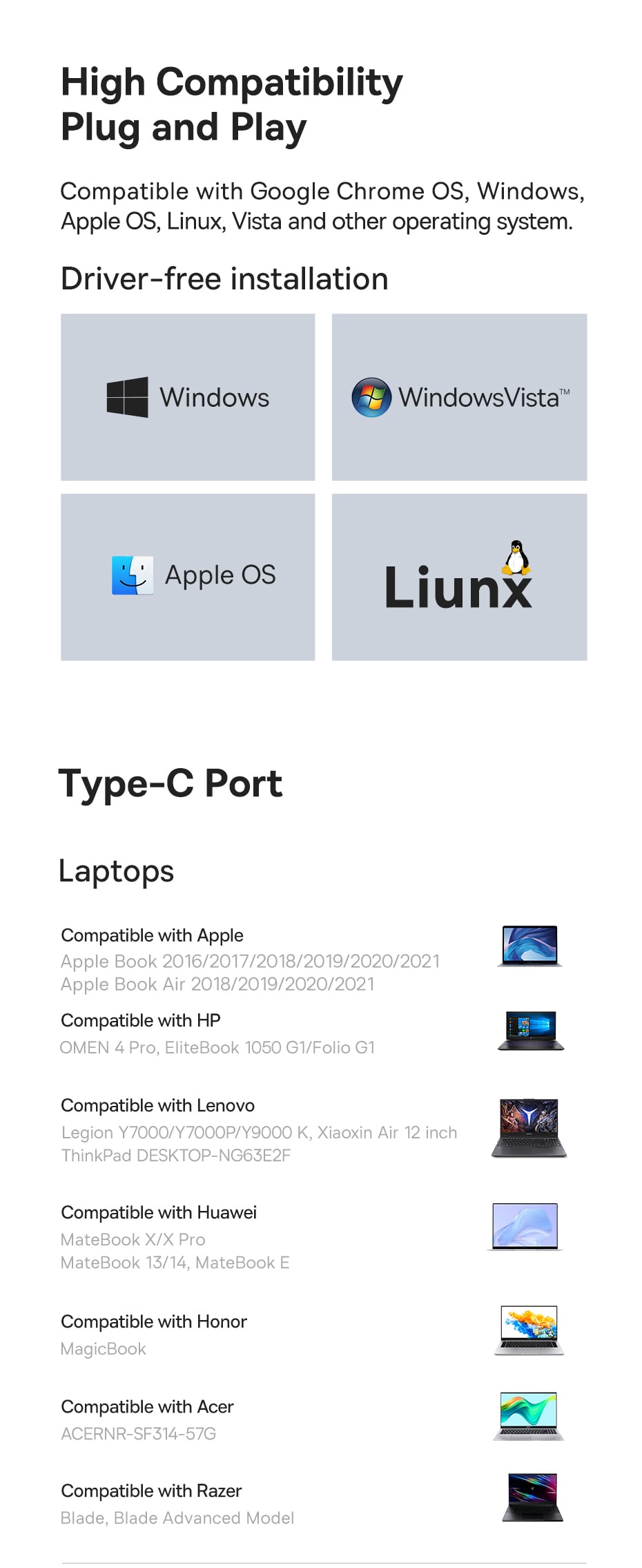 | Tương thích | Thiết bị di động có cổng Type-C |