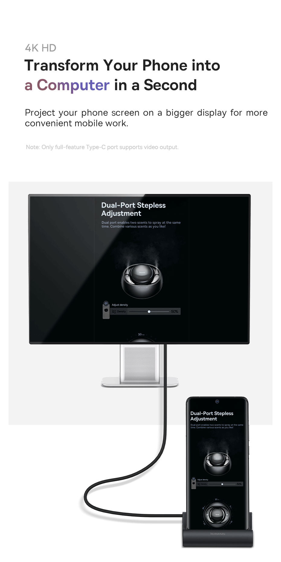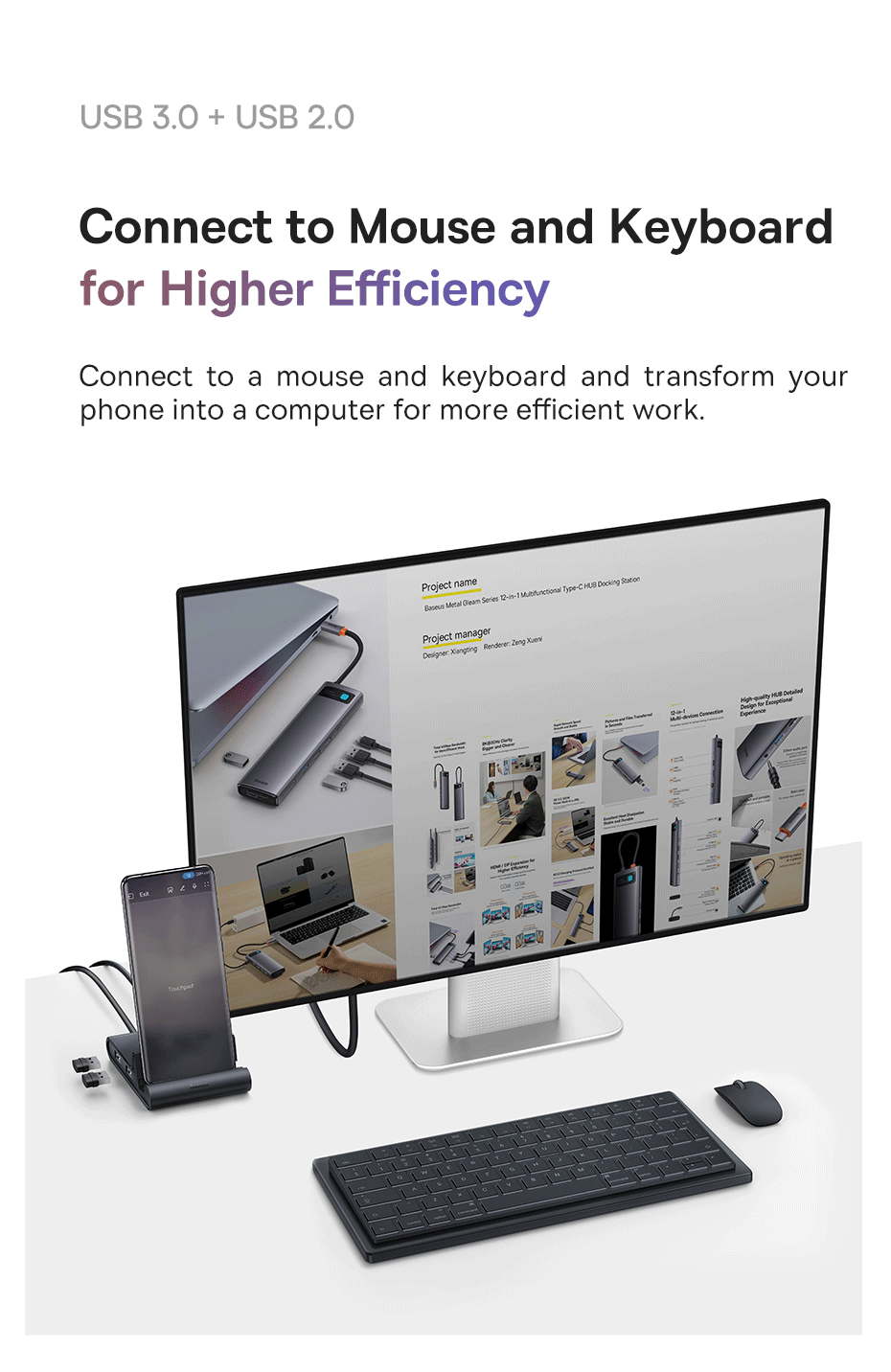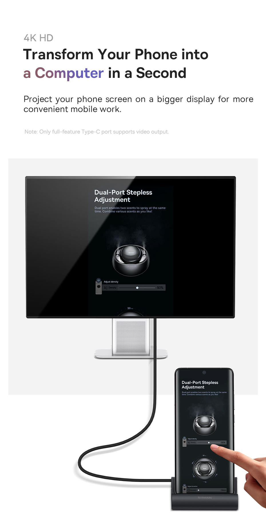 Muốn trải nghiệm làm việc, giải trí trên màn hình lớn trực tiếp từ điện thoại? Baseus Mate Docking Station chính là giải pháp tất cả trong một, vừa là hub mở rộng cổng mạnh mẽ, vừa là giá đỡ điện thoại thông minh, mở ra một thế giới hiệu suất hoàn toàn mới.