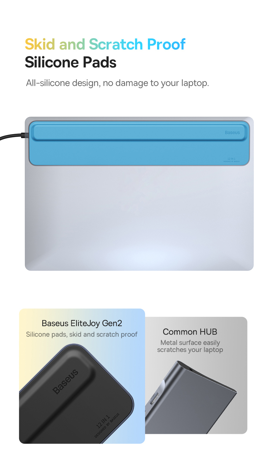 🛡️ Bảo Vệ Laptop Tối Đa: Bề mặt tiếp xúc được phủ một lớp đệm silicon lớn và mềm mại, giúp chống trơn trượt và chống trầy xước cho vỏ máy laptop của bạn, vượt trội so với các loại hub vỏ kim loại thông thường.