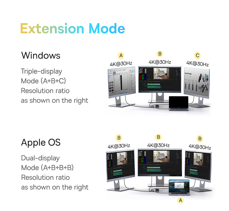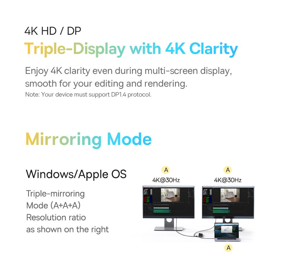 Bản 12 trong 1: Nâng cấp khả năng xuất 3 màn hình với 2 cổng HDMI (4K@60Hz, 4K@30Hz) và 1 cổng DisplayPort (DP), thay thế cho cổng VGA.