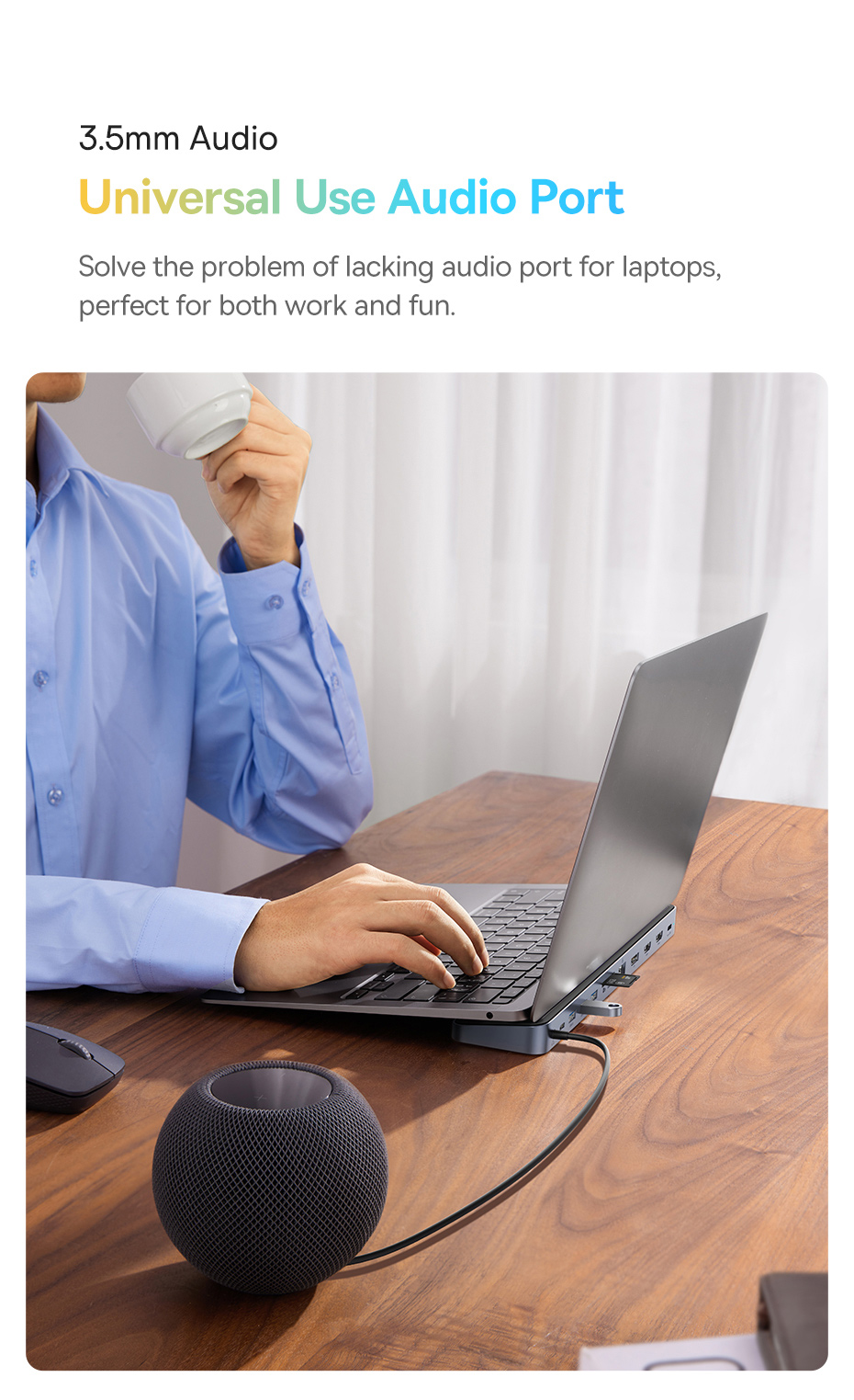 💻 Thiết Kế 2 Trong 1 (Hub & Giá Đỡ): Vừa mở rộng mọi cổng kết nối bạn cần, vừa là một chiếc giá đỡ kê laptop với góc nghiêng 8° công thái học, giúp bạn có tư thế gõ phím thoải mái và tăng cường khả năng tản nhiệt cho máy.