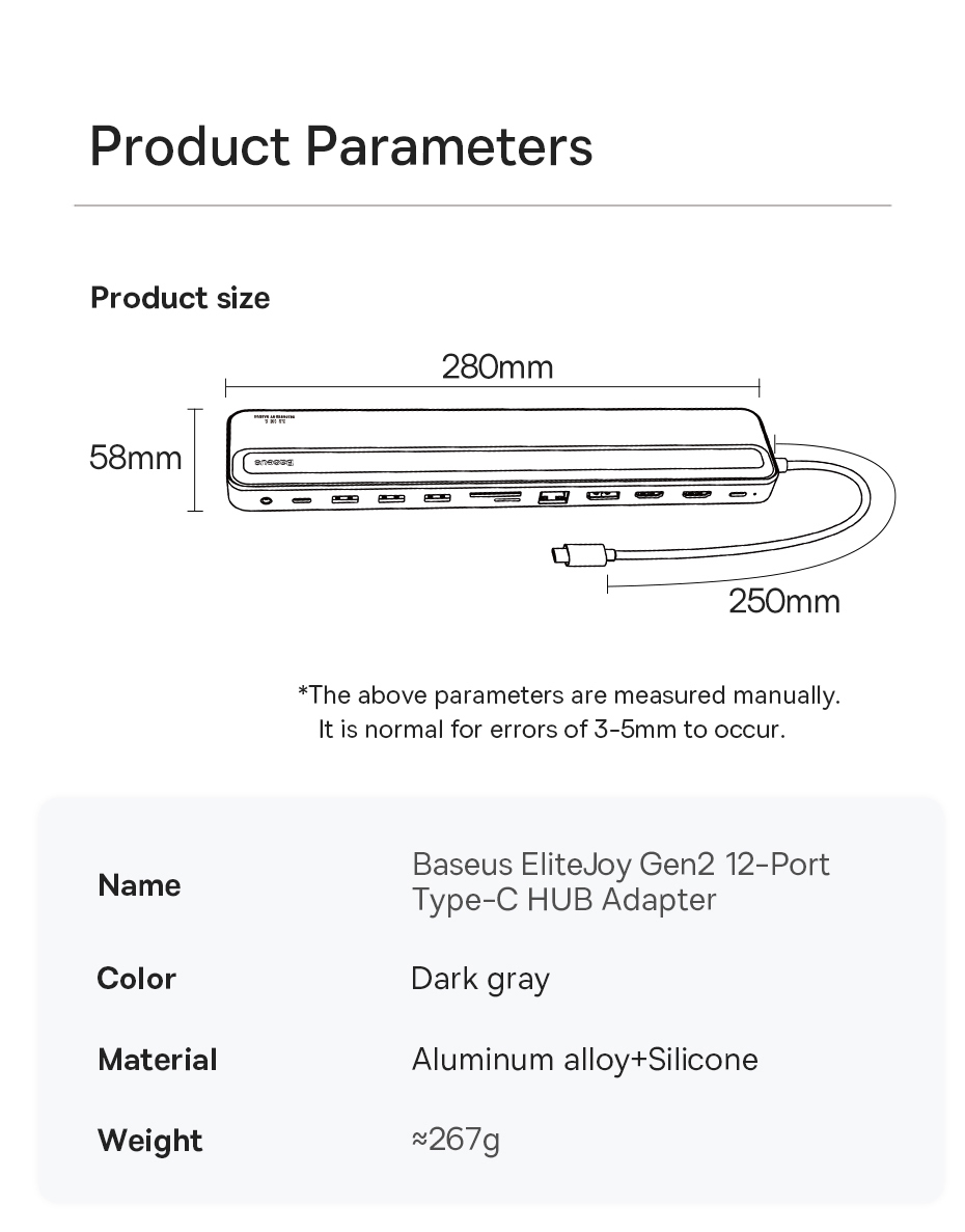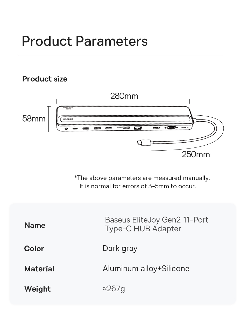 | Tên | Baseus EliteJoy Gen2 11-Port Type-C HUB Adapter Cho Laptop Macbook iPad Pro |