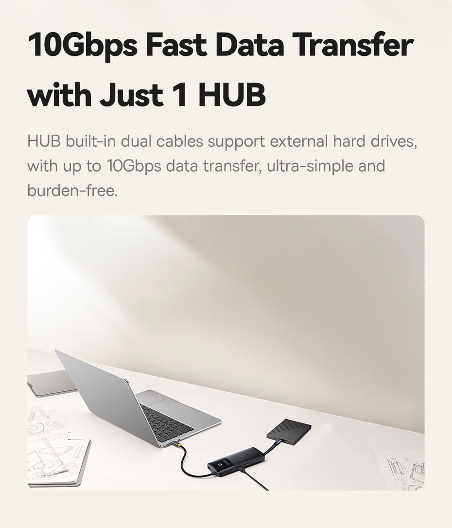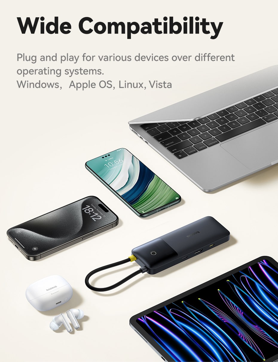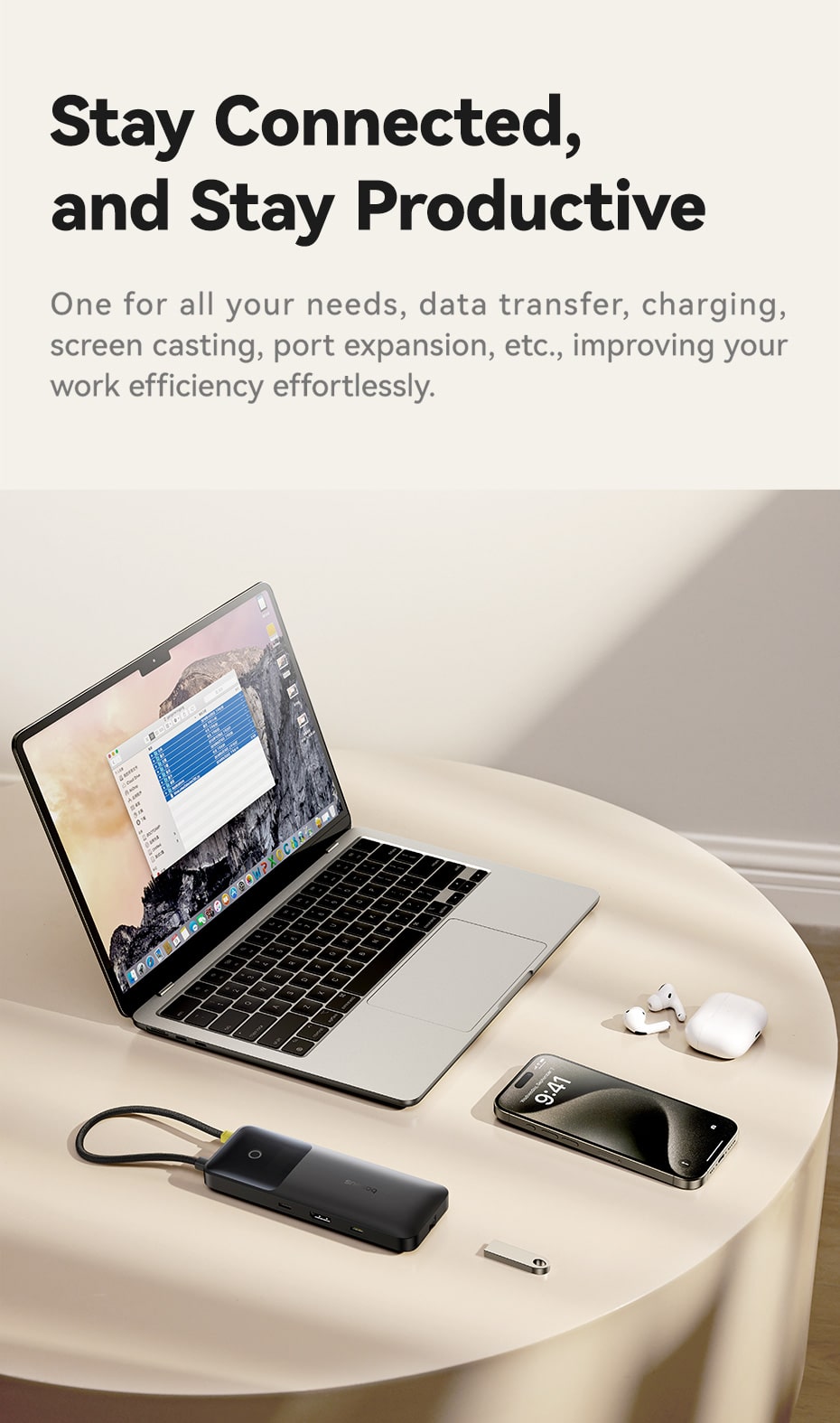 Bạn mệt mỏi vì laptop thiếu cổng kết nối, lại phải mang theo nhiều loại hub và dây cáp lỉnh kỉnh? Hub mở rộng Baseus với thiết kế 2 dây cáp tích hợp là giải pháp "tất cả trong một" đột phá, cung cấp mọi kết nối bạn cần trong một thiết bị duy nhất, mạnh mẽ và nhỏ gọn.