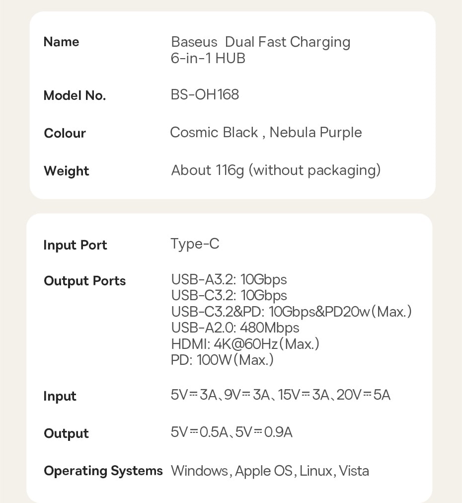 | Tên | Hub Mở Rộng Kết Nối OS-Baseus Dual Fast Charging HUB |
