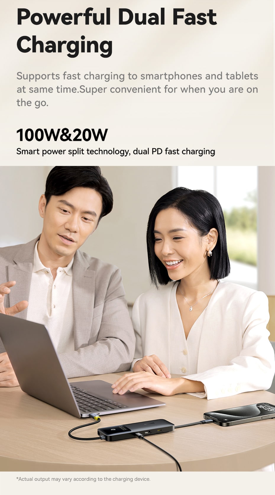 💻📱 Sạc Kép Siêu Nhanh: Cung cấp khả năng sạc nhanh đồng thời cho 2 thiết bị với công suất lớn, ví dụ như sạc cho laptop và sạc nhanh cho điện thoại. Công nghệ BPS thông minh tự động phân bổ dòng điện để đảm bảo hiệu suất tối ưu và an toàn.