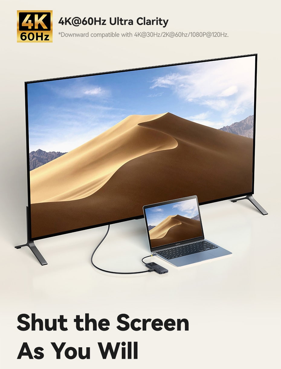 📺 Xuất Hình Ảnh 4K Sắc Nét & Bảo Mật: Dễ dàng kết nối laptop với màn hình lớn, TV hoặc máy chiếu để làm việc và giải trí với chất lượng hình ảnh 4K siêu nét. Tích hợp nút bấm tắt màn hình tiện lợi, giúp bạn bảo vệ sự riêng tư ngay lập tức khi cần.