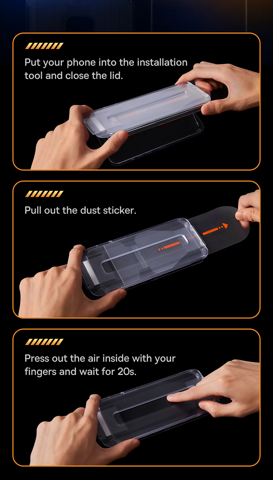 Đi kèm khung dán chống bụi: Giúp tự dán tại nhà cực kỳ dễ dàng, chính xác, không bong bóng, không hạt bụi.