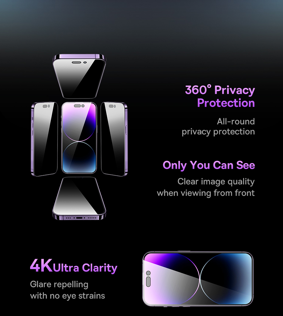 💎 HIỂN THỊ 4K SIÊU NÉT & CHỐNG CHÓI: Dù có tính năng chống nhìn trộm 360°, kính vẫn đảm bảo độ trong suốt cao chuẩn 4K khi nhìn thẳng, giữ nguyên màu sắc True Tone. Lớp phủ chống chói giúp dễ dàng sử dụng ngoài trời.
