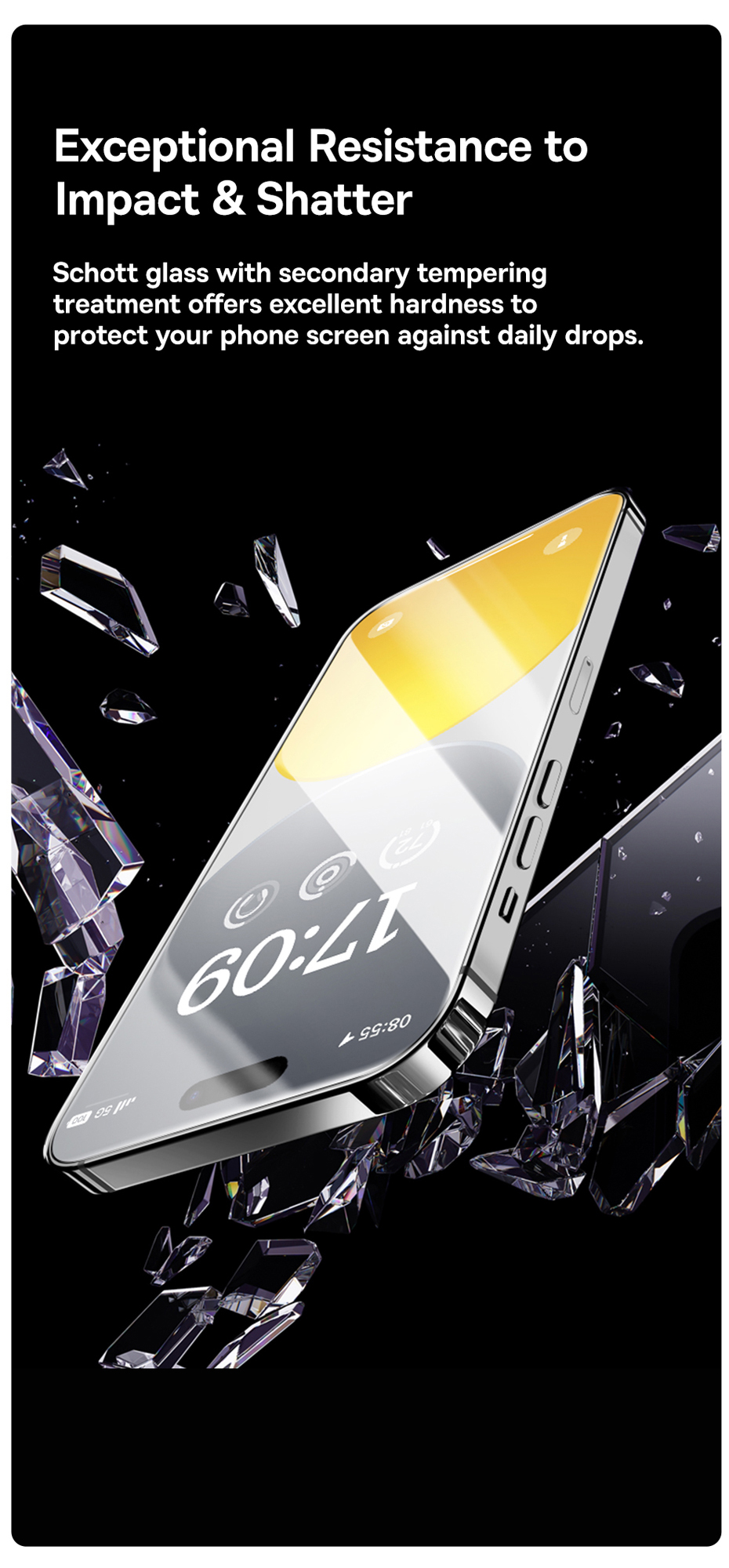 🛡️ CHẤT LIỆU KÍNH SCHOTT SIÊU CỨNG TỪ ĐỨC: Sử dụng vật liệu kính Schott danh tiếng, được tôi luyện cường độ cao, mang lại khả năng chống va đập và chống trầy xước vượt trội. Bảo vệ màn hình điện thoại của bạn an toàn tuyệt đối trước mọi rủi ro hàng ngày.