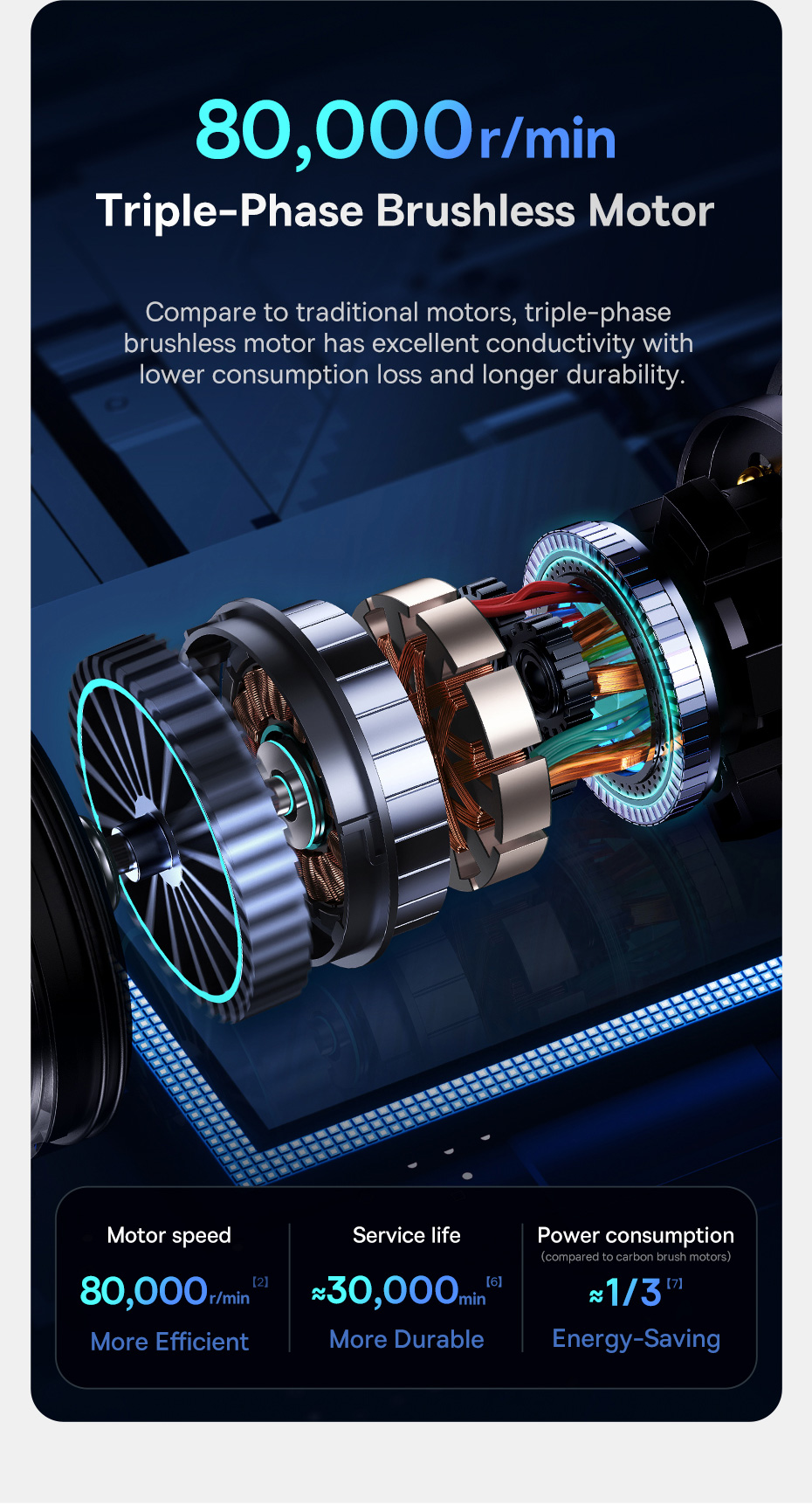 ○ Động cơ không chổi than: Hoạt động bền bỉ, mạnh mẽ và ít tiếng ồn hơn động cơ truyền thống.