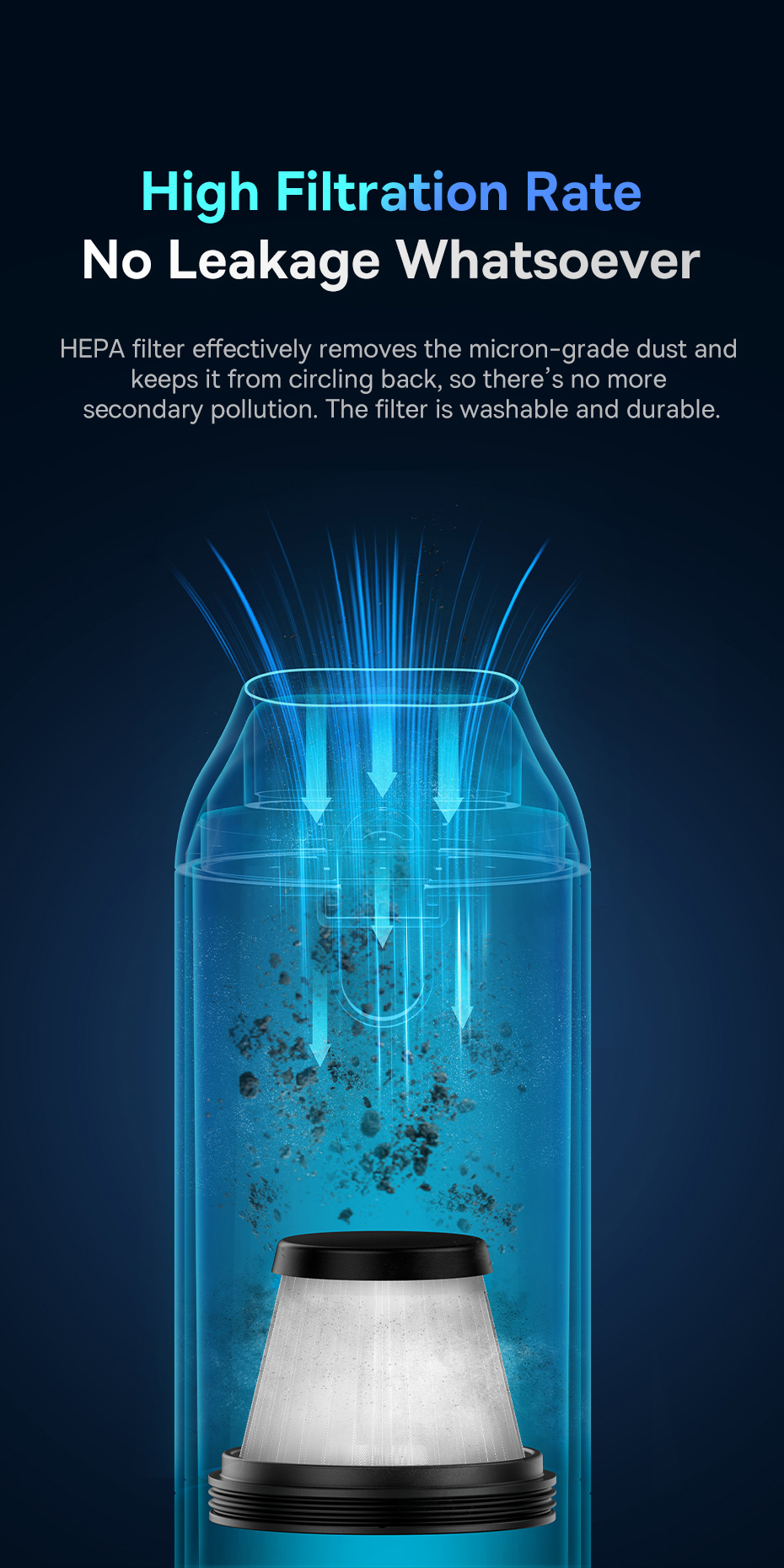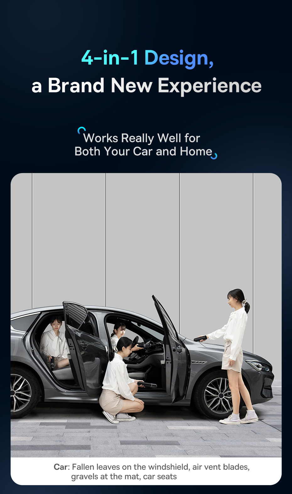 💨 Lực Hút Siêu Mạnh 12000Pa: Trang bị động cơ không chổi than 80,000 vòng/phút, dễ dàng hút sạch mọi loại bụi bẩn, tóc, vụn thức ăn, và cả các hạt nặng như cát, sỏi nhỏ trong xe hay trên sofa.