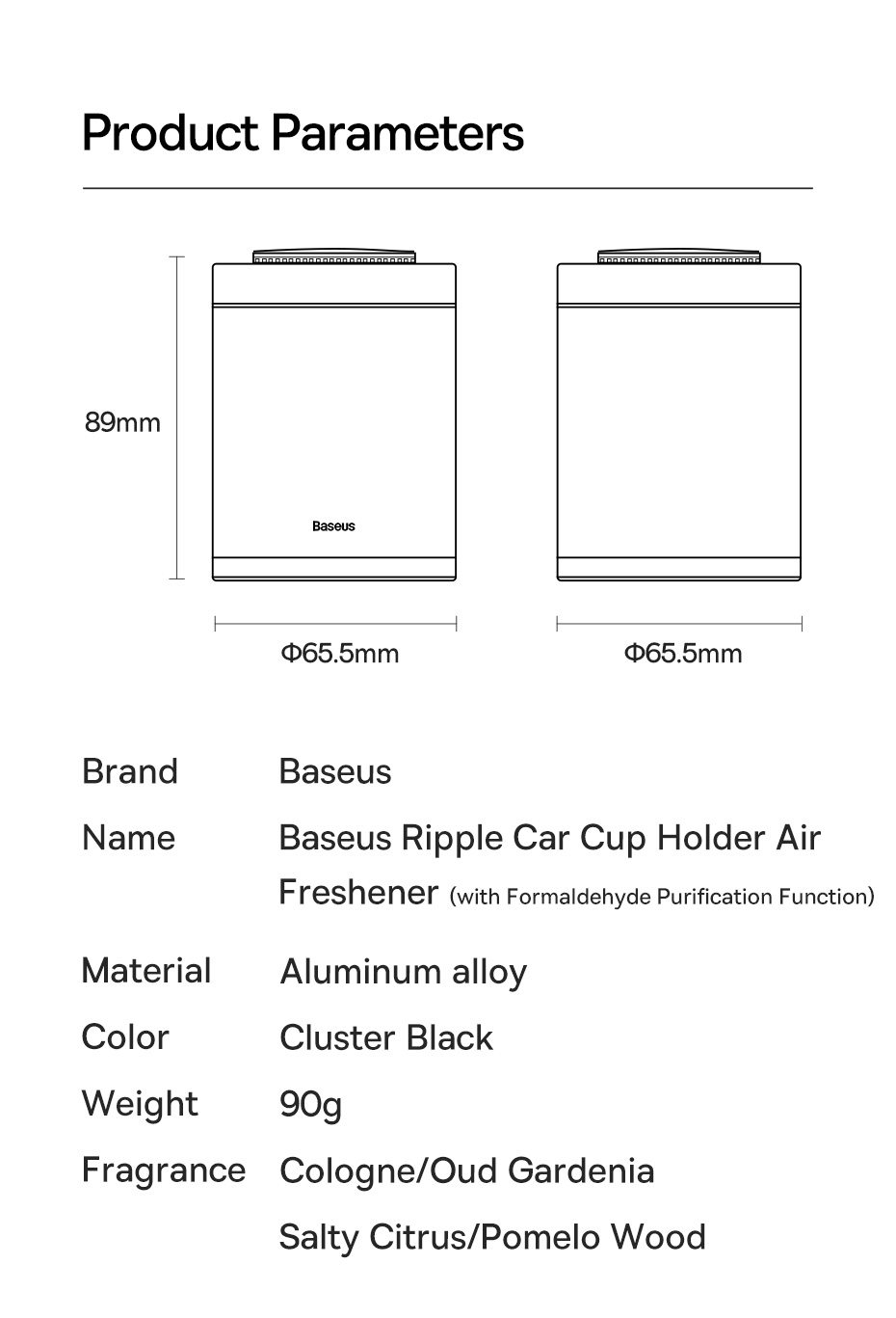 | Tên | Máy Lọc Không Khí Ô Tô / Nhà Cửa Baseus Ripple Series Car CupHolder Air Freshener (with Formaldehyde Purification Function) |