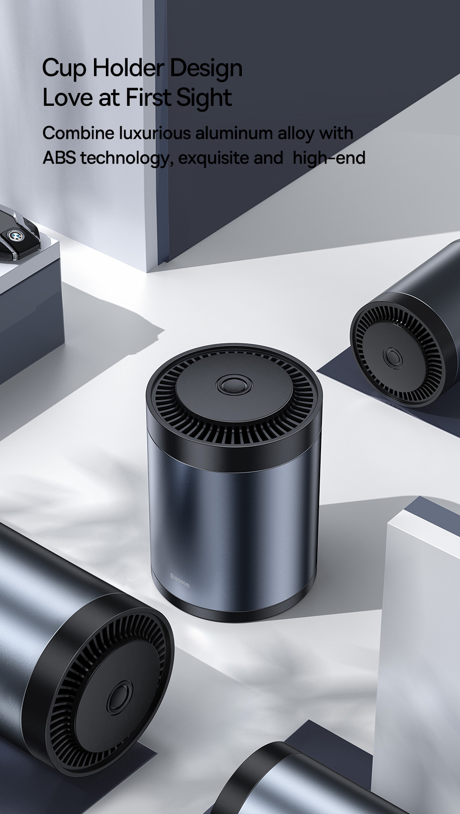 ○ Thiết kế sang trọng: Vỏ hợp kim nhôm cao cấp, vừa vặn với hộc để ly trên ô tô hoặc để trên bàn làm việc.