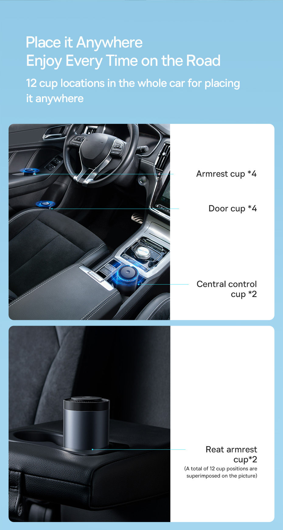 ✨ Thiết Kế Hợp Kim Nhôm Cao Cấp: Vỏ ngoài được làm từ hợp kim nhôm sang trọng, bền bỉ, vừa vặn hoàn hảo trong hộc để ly trên xe, nâng tầm đẳng cấp cho không gian nội thất.