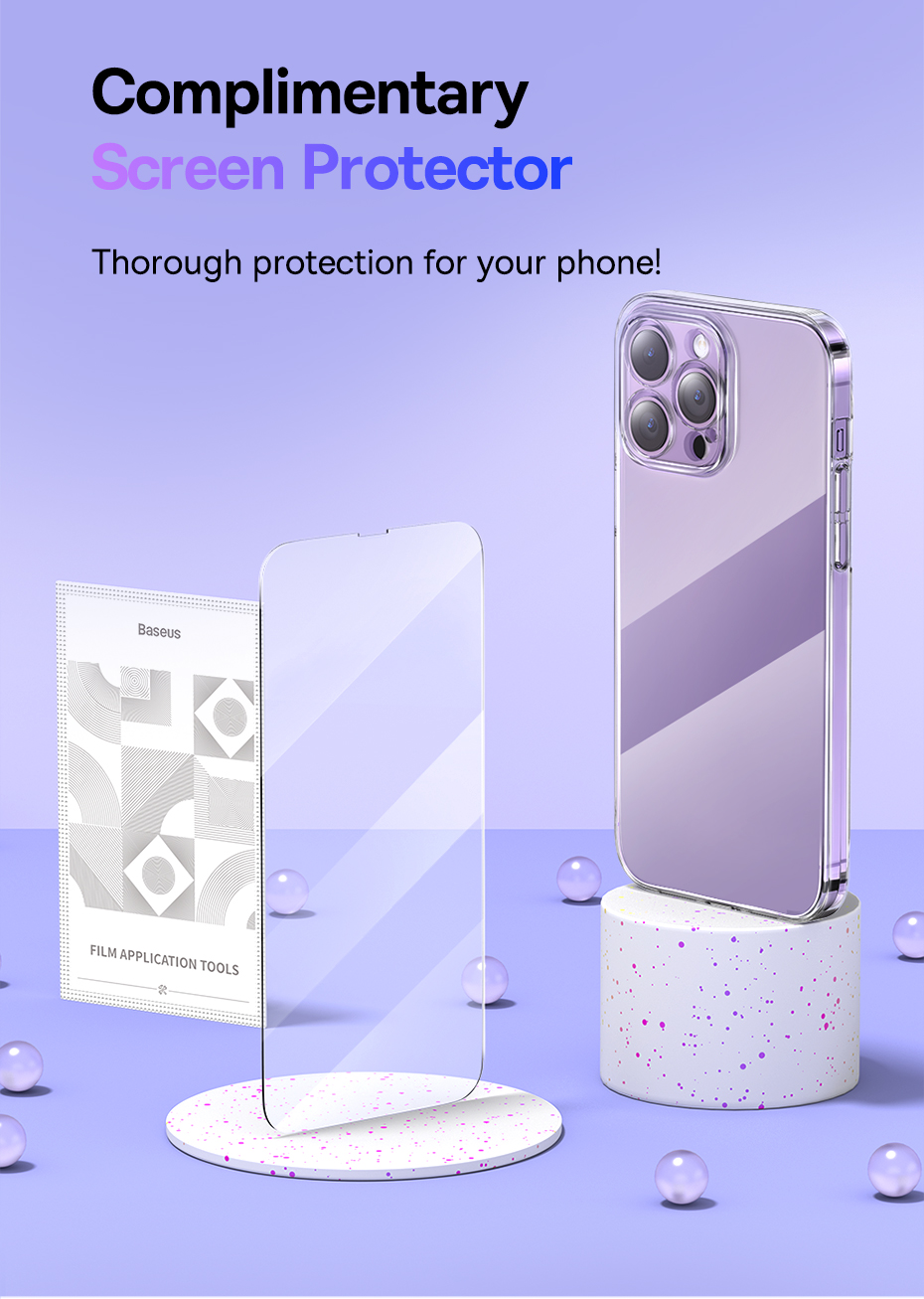 Tặng kèm kính cường lực Baseus: Một bộ sản phẩm bao gồm ốp lưng và kính cường lực để bảo vệ toàn diện.