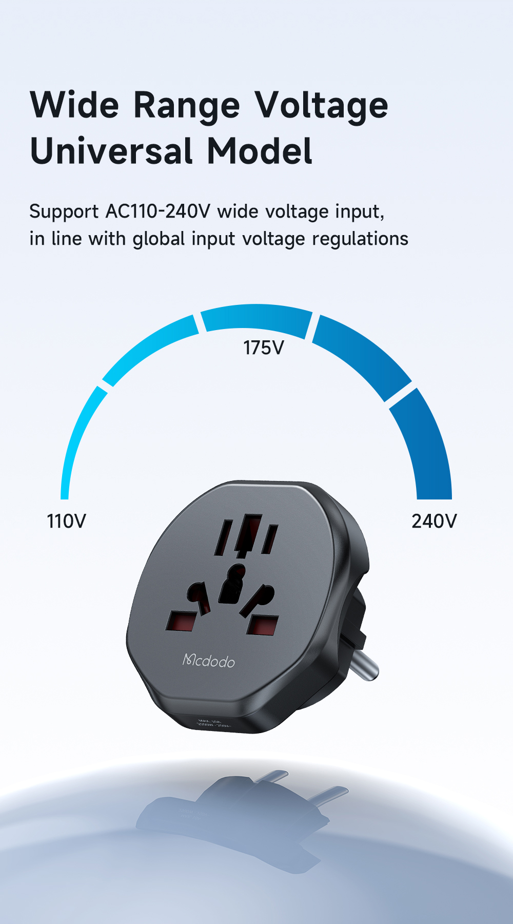 Điện áp quốc tế (110V-240V): Tương thích với dải điện áp của hầu hết các quốc gia.