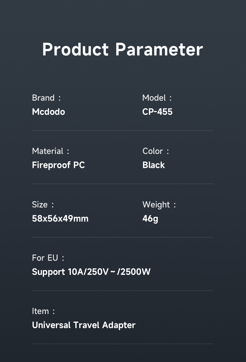 🔥 CHỊU TẢI SIÊU CAO 2500W: Không giống các đầu chuyển du lịch giá rẻ chỉ dùng được cho sạc điện thoại, Mcdodo chịu được công suất lớn lên đến 2500W. An toàn để sử dụng cho cả các thiết bị công suất cao như ấm đun nước, máy sấy tóc, bàn ủi...