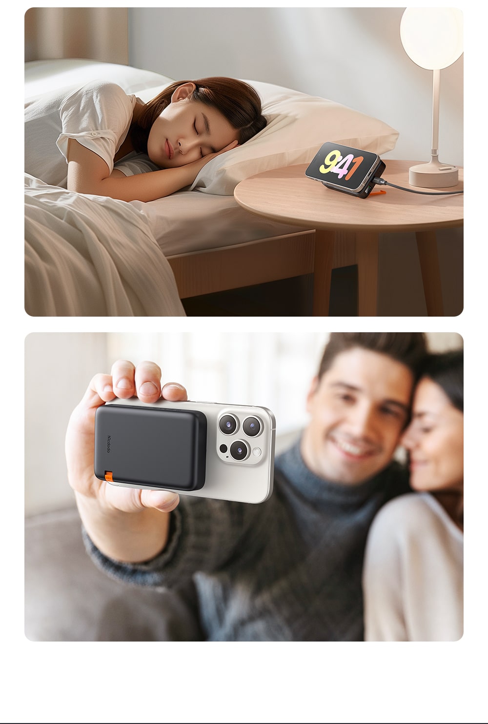 🤏 Thiết Kế Nhỏ Gọn, Không Che Camera: Với kích thước nhỏ gọn, viên pin nằm gọn gàng sau lưng điện thoại mà không che mất cụm camera, cho phép bạn vừa sạc vừa chụp ảnh một cách thoải mái.