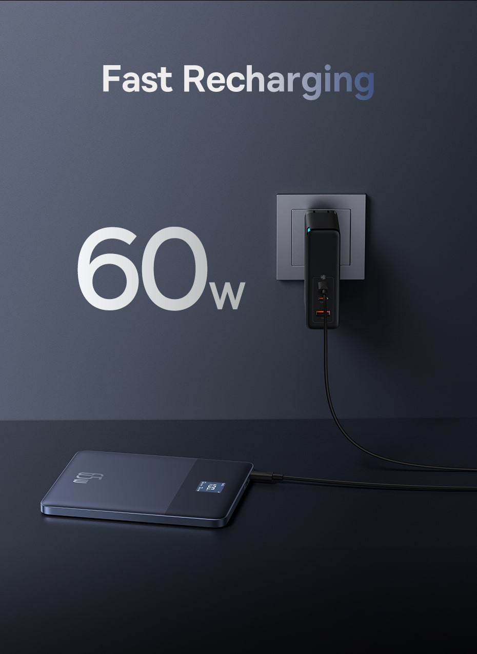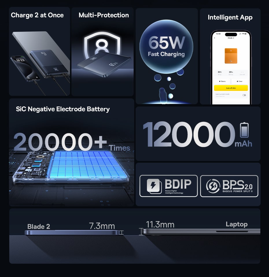 🔪 THIẾT KẾ "LƯỠI DAO" SIÊU MỎNG & SỨC MẠNH 65W: Với độ mỏng đáng kinh ngạc chỉ 7.3mm ở điểm mỏng nhất, Baseus Blade2 dễ dàng nằm gọn trong túi xách cùng với laptop. Dù mỏng nhẹ, nó vẫn sở hữu sức mạnh 65W, có thể sạc nhanh cho hầu hết các dòng laptop mỏng nhẹ (sạc 46% chỉ trong 30 phút).
