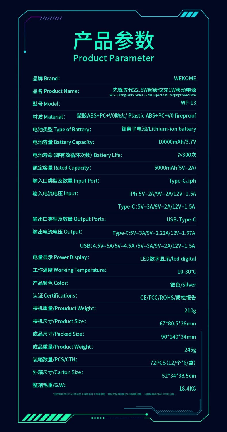 | Tên | Pin Dự Phòng Pin Dự Phòng WEKOME WP-13 Vanguard V Series 22.5W Super Fast Charging Power Bank |