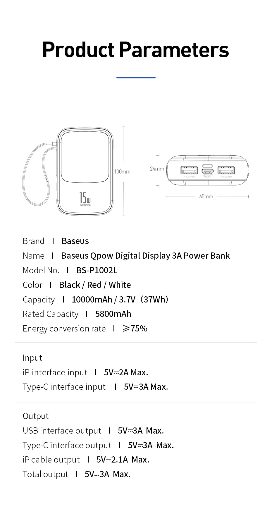 | Type-C Output | 5V-3A |