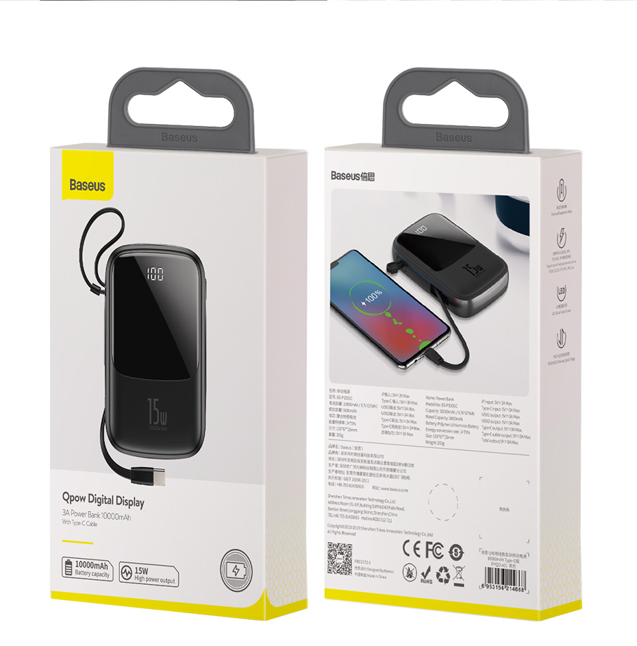 | Tên | Pin dự phòng tích hợp cáp sạc Baseus Q Pow Digital Display 10,000mAh (3A/ 15W, Fast Charge Power Bank With Cable Iphone) |