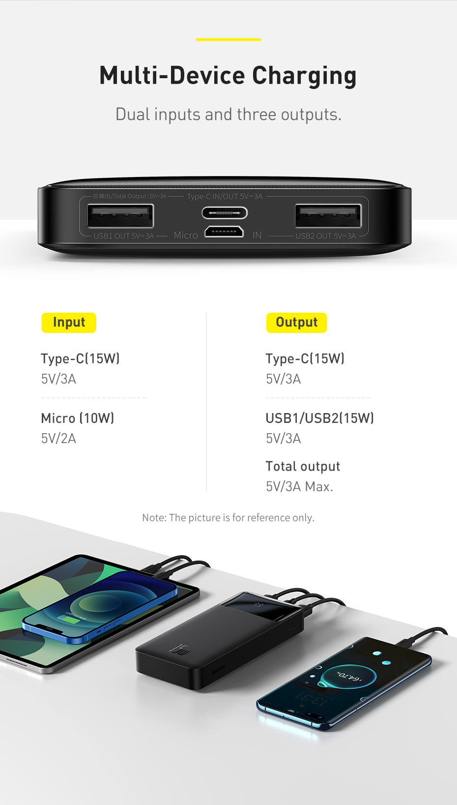 Hỗ trợ sạc nhanh 2 chiều: Có thể sạc nhanh cho các thiết bị và sạc nhanh cho chính nó qua cổng Type-C.