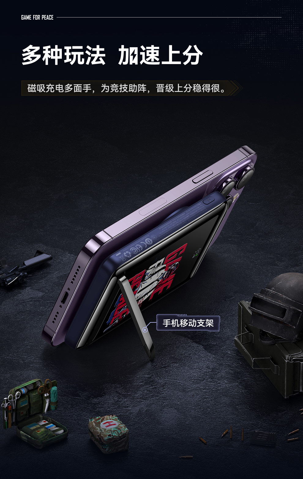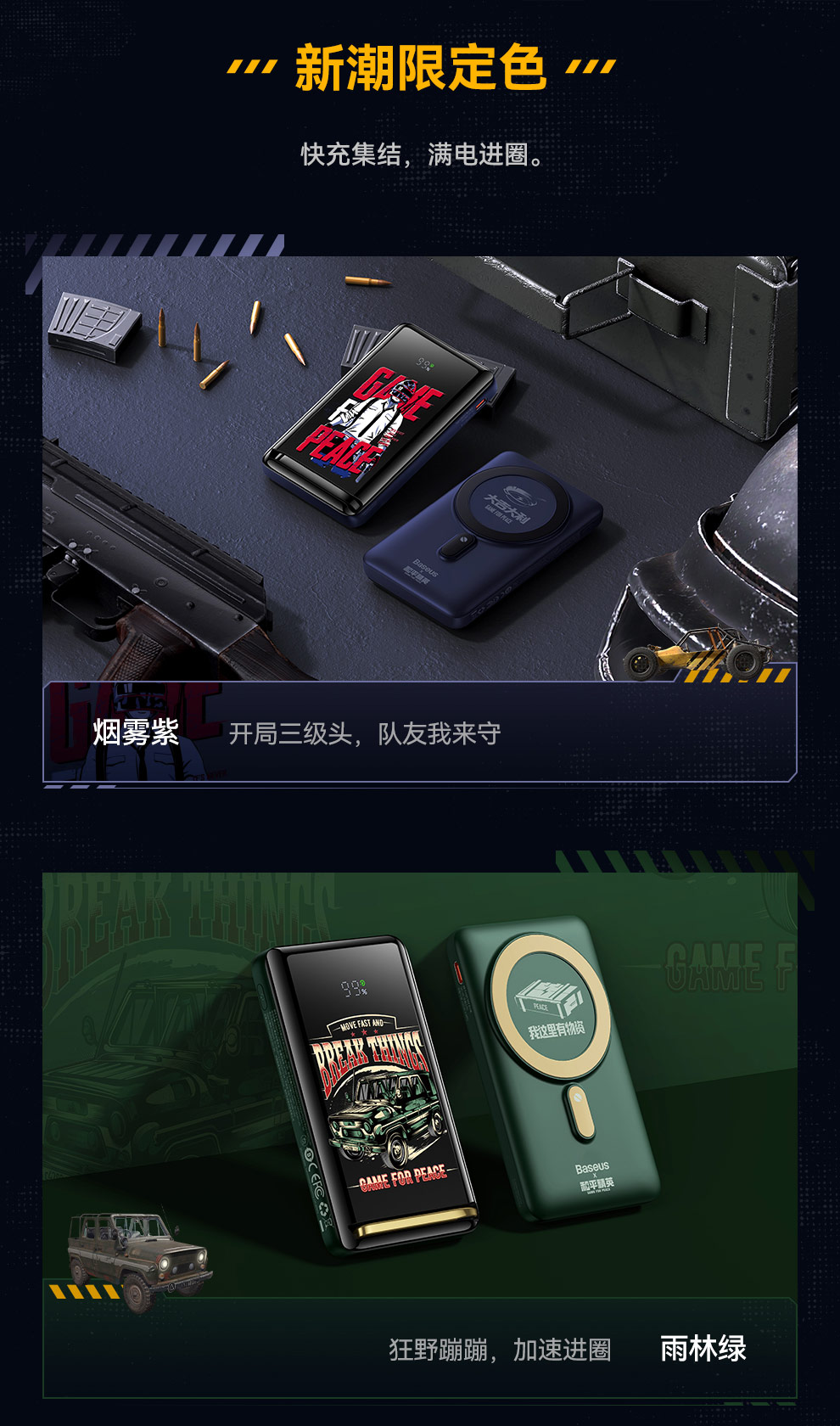 "Đang giao tranh căng thẳng thì máy báo pin yếu?" Đừng để hết pin làm lỡ mất pha highlight của bạn! Pin Sạc Dự Phòng Baseus Magnetic Kickstand phiên bản đặc biệt "Game for Peace" là trợ thủ đắc lực, vừa cung cấp năng lượng nhanh chóng, vừa có chân chống tiện lợi, lại còn mang đậm phong cách gaming độc đáo.