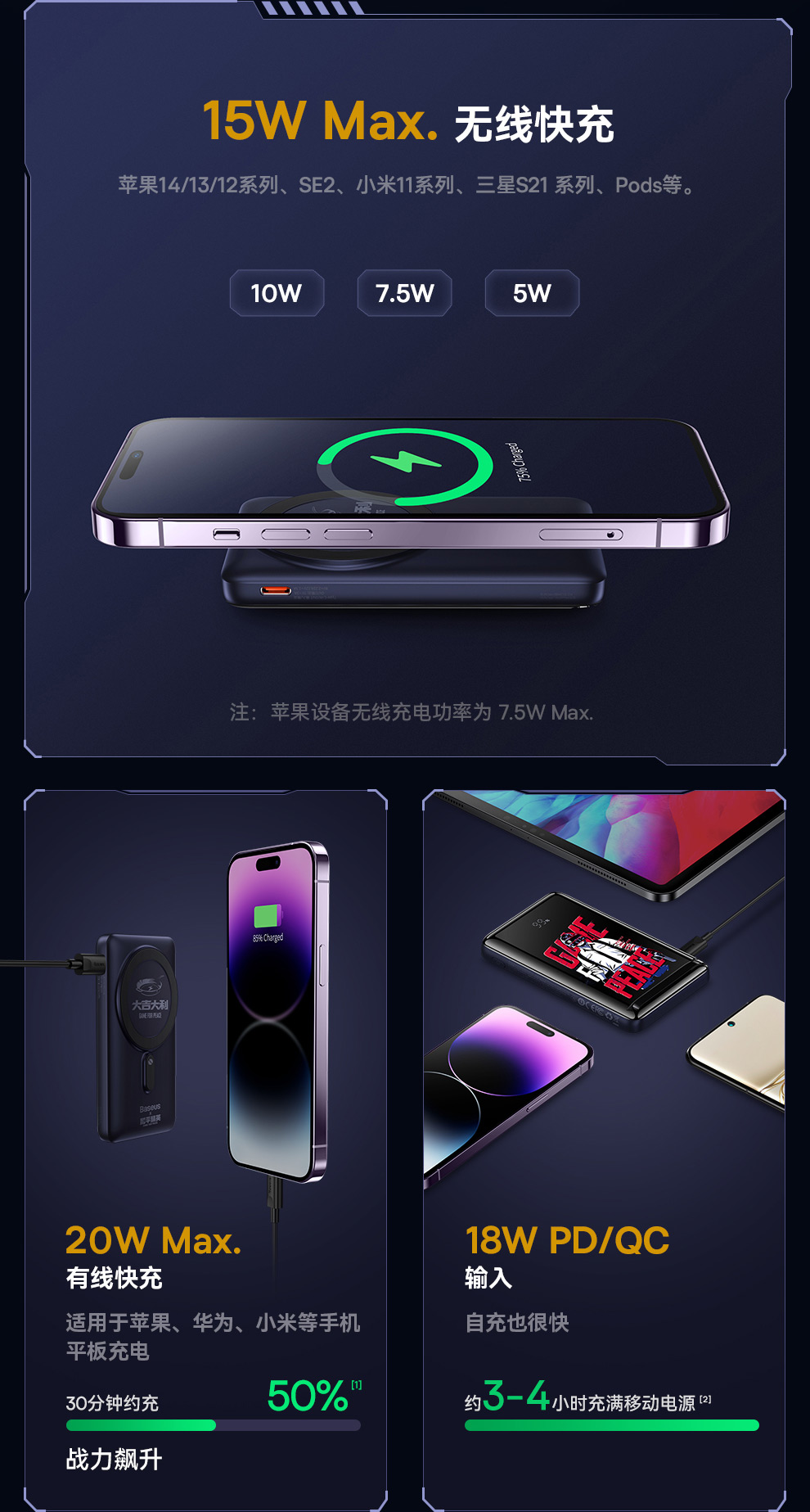 ⚡ SẠC KÉP LINH HOẠT - KHÔNG DÂY & CÓ DÂY 20W: Tùy chọn sạc theo cách của bạn. Sạc không dây tiện lợi (tối đa 15W, 7.5W cho iP) hoặc sạc siêu tốc qua cổng Type-C với công suất PD 20W mạnh mẽ.