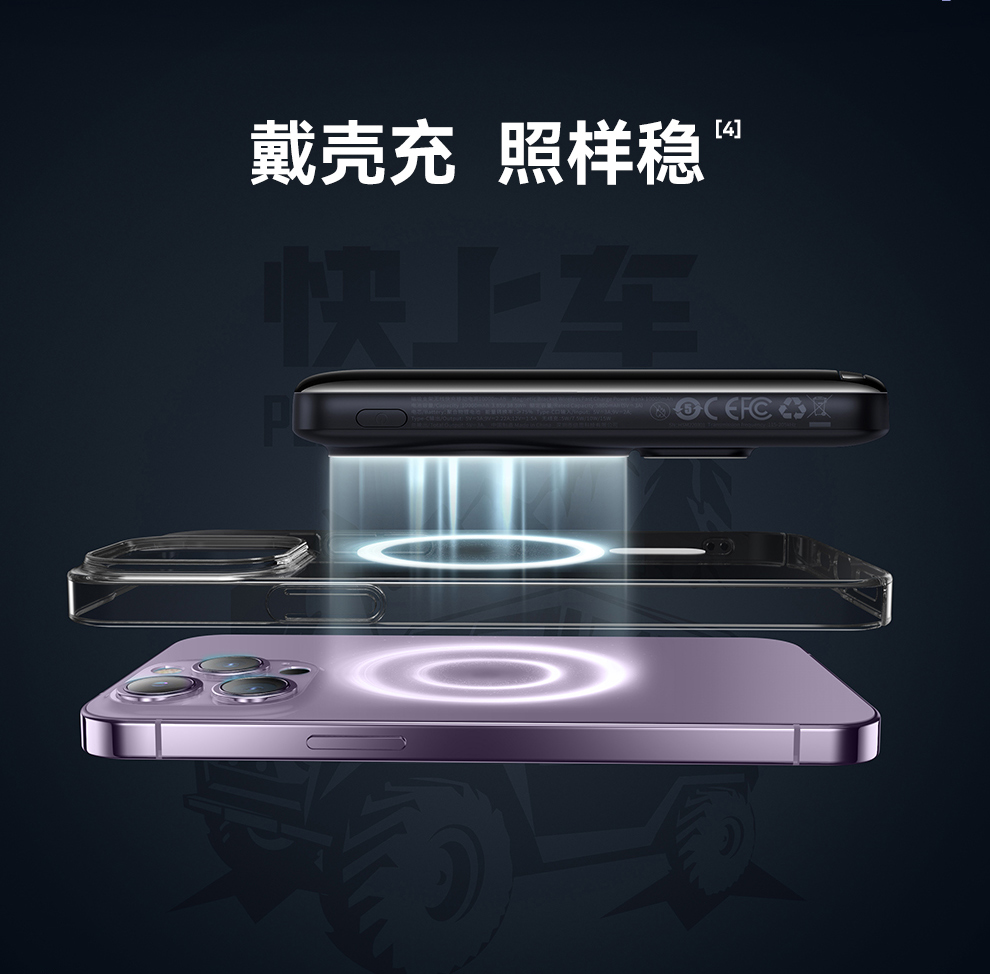 Hít Nam Châm Từ Tính Mạnh Mẽ: Tự động căn chỉnh, sạc không dây tiện lợi (Tương thích MagSafe).