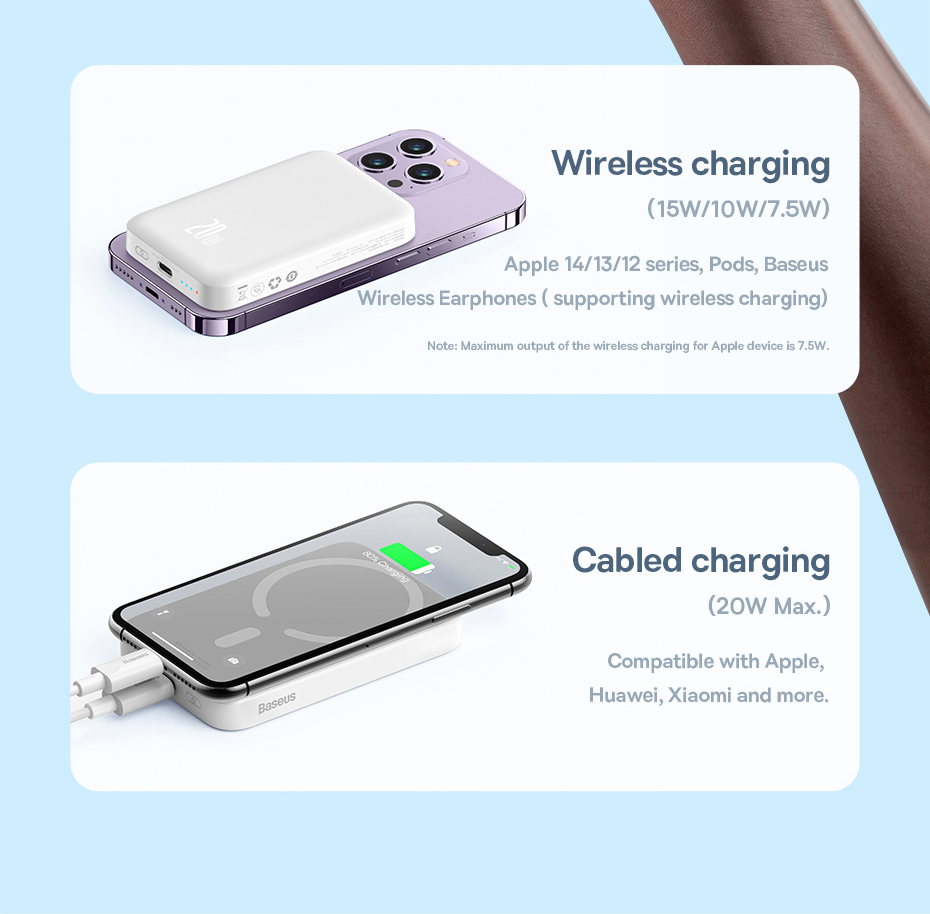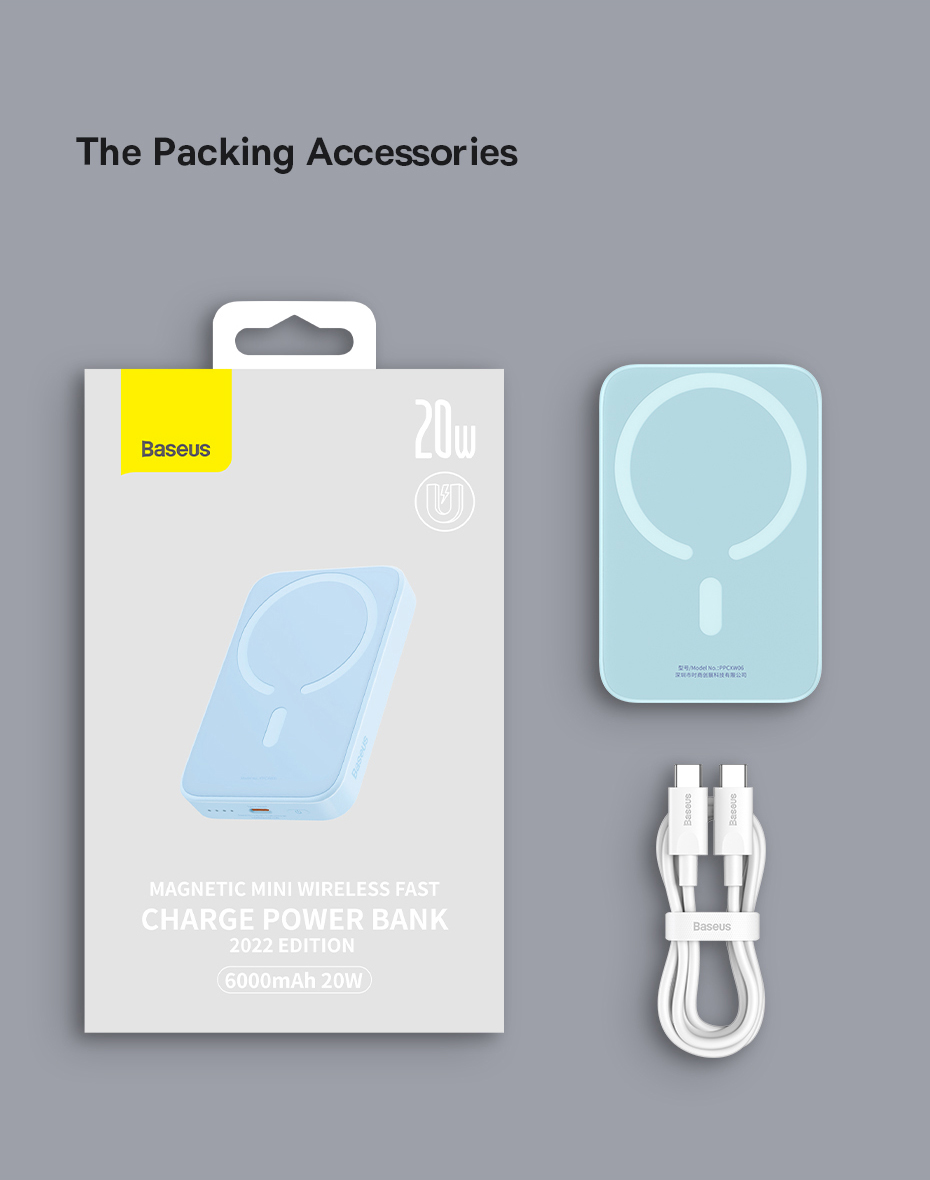 Pin sạc dự phòng không dây Baseus Magnetic Mini 2022 là giải pháp sạc hiện đại kết hợp giữa sạc không dây từ tính và sạc nhanh có dây trong một thiết bị nhỏ gọn. Với công suất sạc không dây lên đến 20W, sản phẩm tương thích hoàn hảo với các dòng iP hỗ trợ NamChâm cũng như nhiều thiết bị hỗ trợ chuẩn Qi. Thiết kế tối giản, gọn nhẹ, dễ mang theo, đi kèm cáp sạc Type-C to Type-C dài 30cm tiện lợi khi sử dụng.