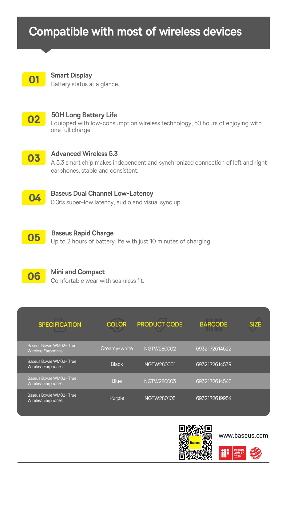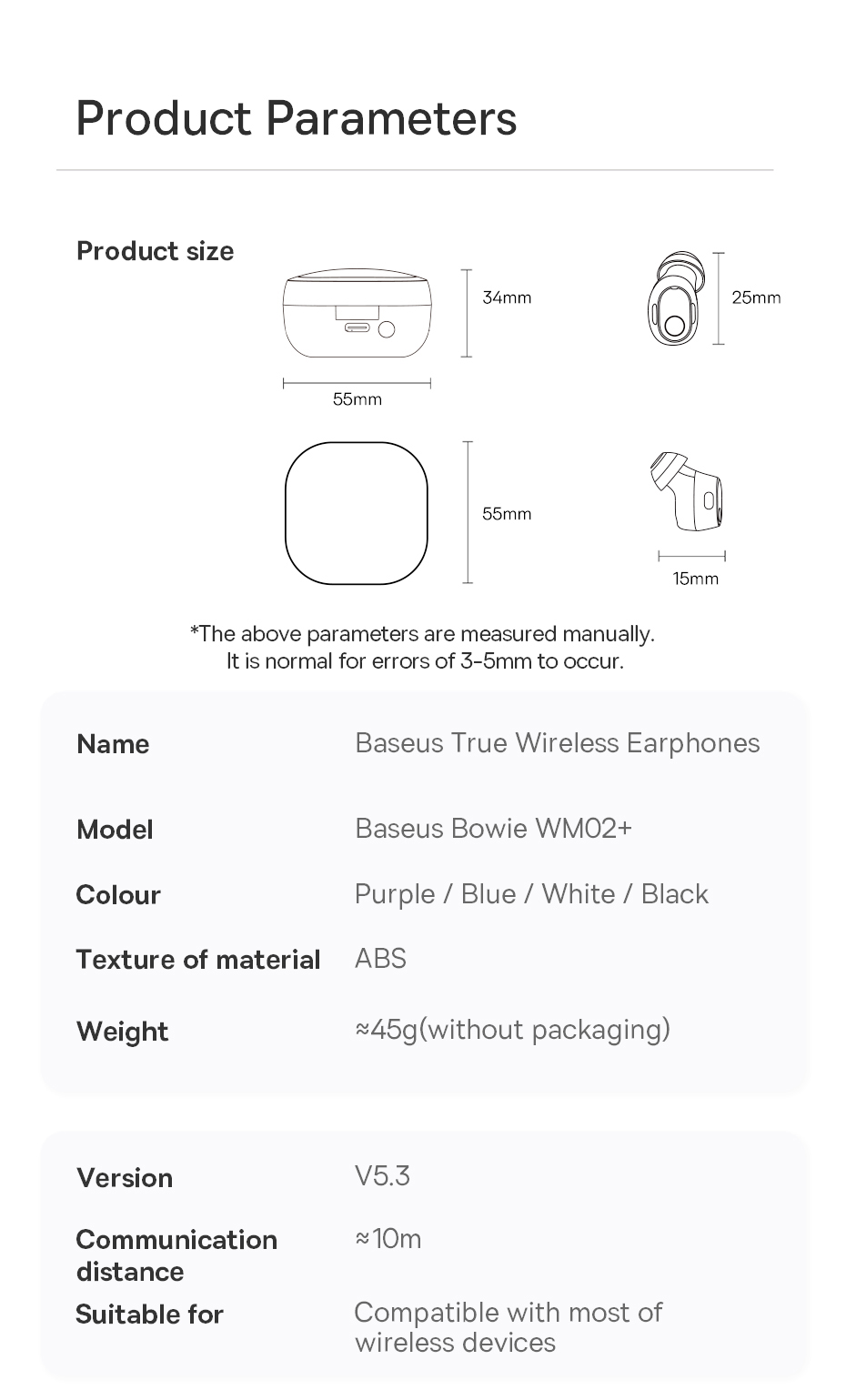 Tai nghe Bluetooth Baseus Bowie WM02 Plus là sự kết hợp hoàn hảo giữa thiết kế thời trang, chất lượng âm thanh ấn tượng và tính năng tiện ích. Đây là lựa chọn lý tưởng cho những ai tìm kiếm một chiếc tai nghe true wireless đa năng, phù hợp với phong cách sống hiện đại, năng động.