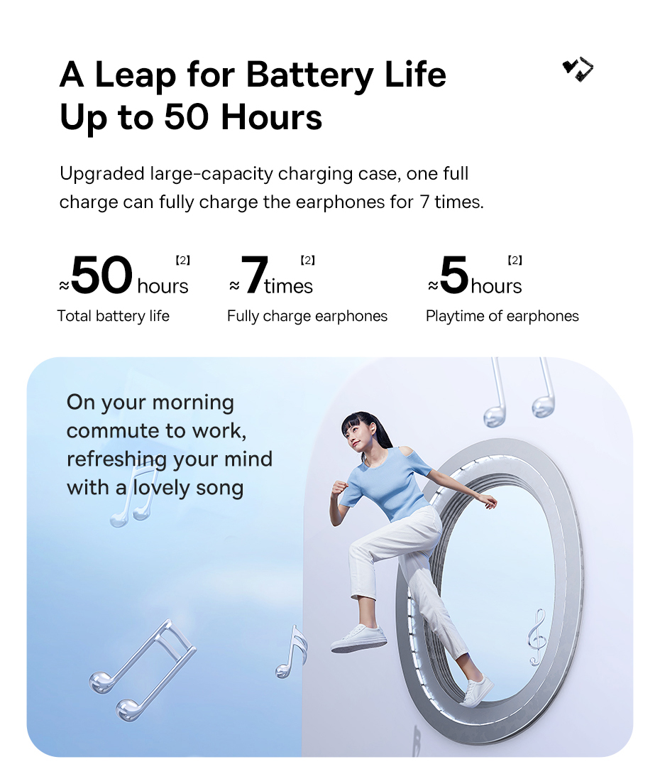 - Thời lượng pin lên đến 30 giờ sử dụng (khi kết hợp với hộp sạc), đáp ứng cả ngày dài năng động.
