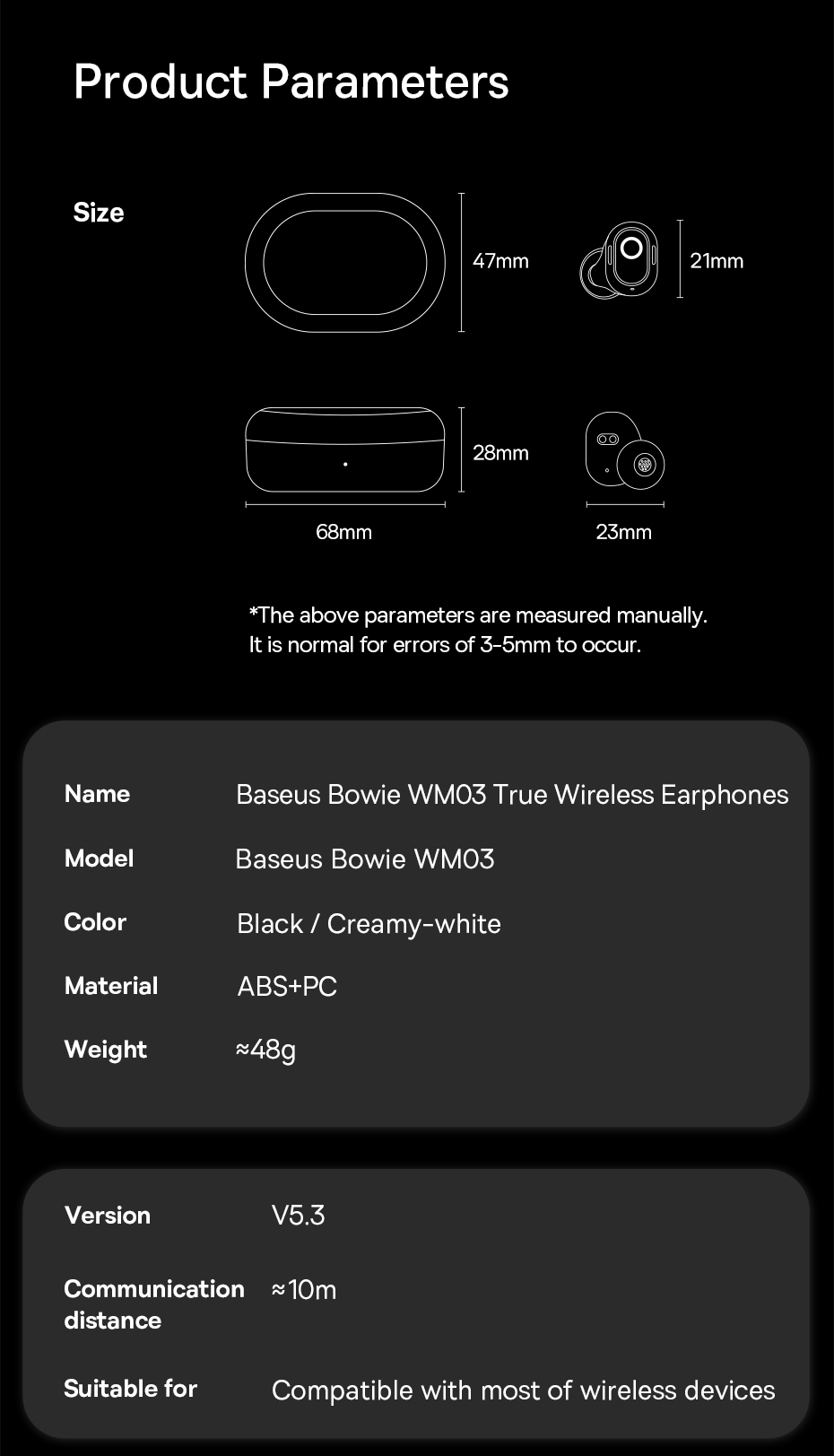 | Tên | Tai Nghe Bluetooth Baseus Bowie WM03 True Wireless Earphones |