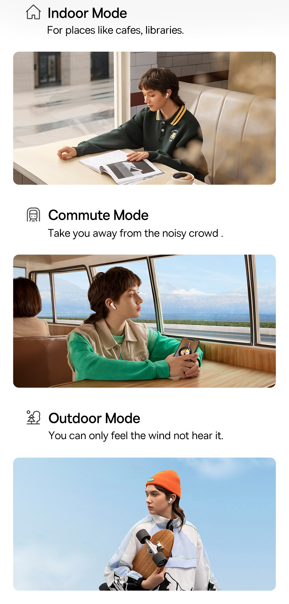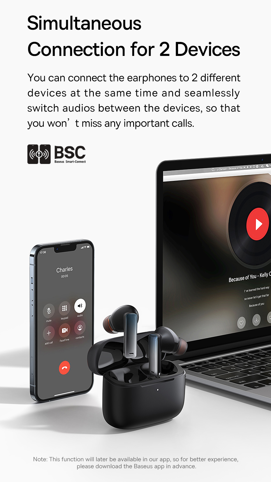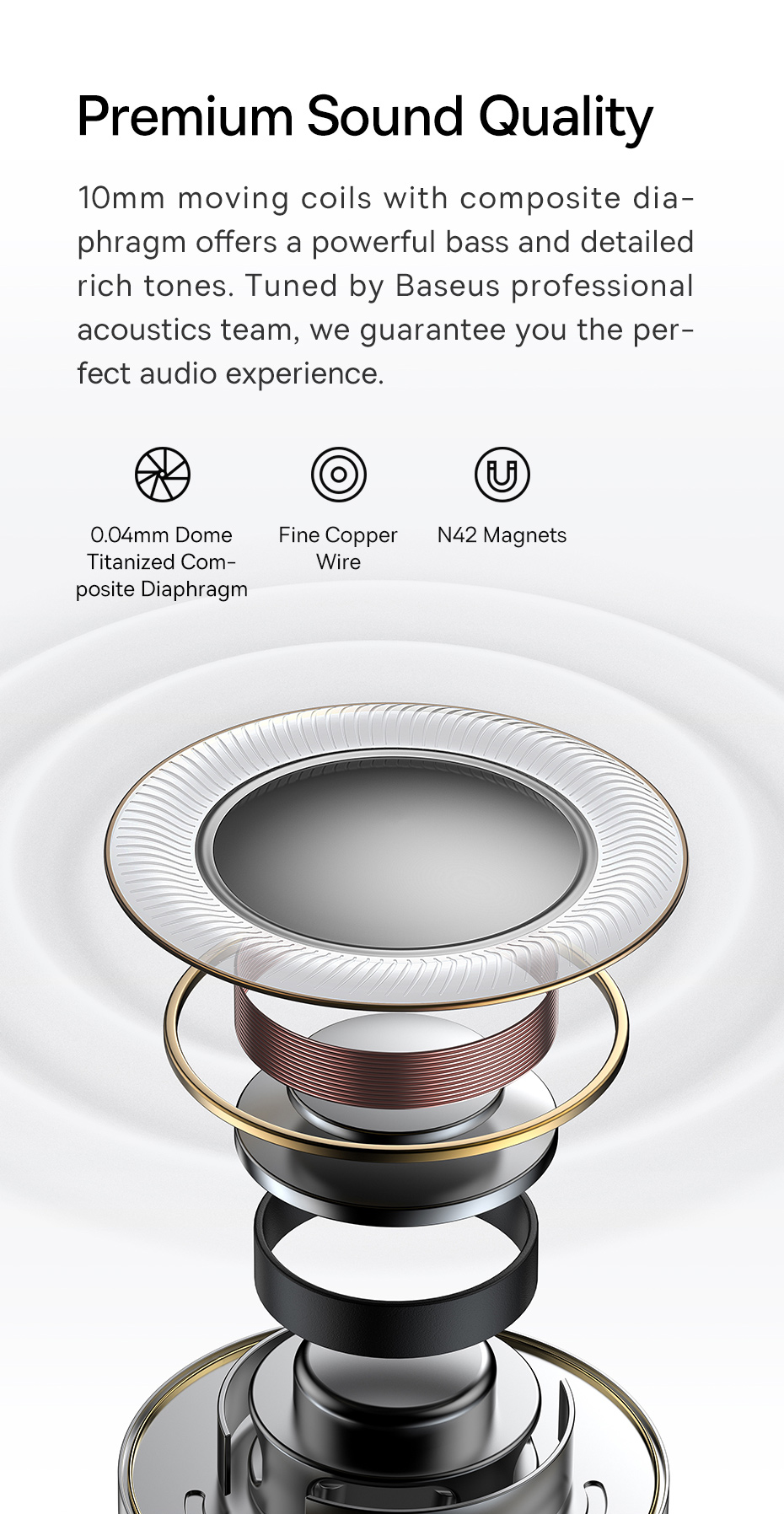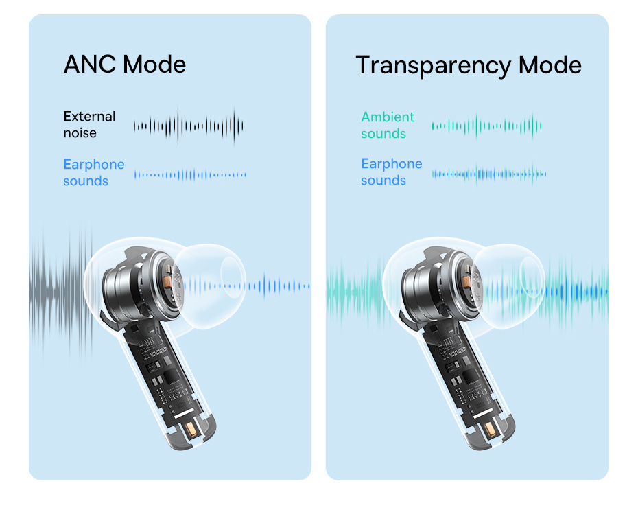 Chống ồn chủ động (ANC) thông minh: Tùy chỉnh 10 cấp độ và nhiều chế độ (trong nhà, đi lại, ngoài trời) qua App Baseus.
