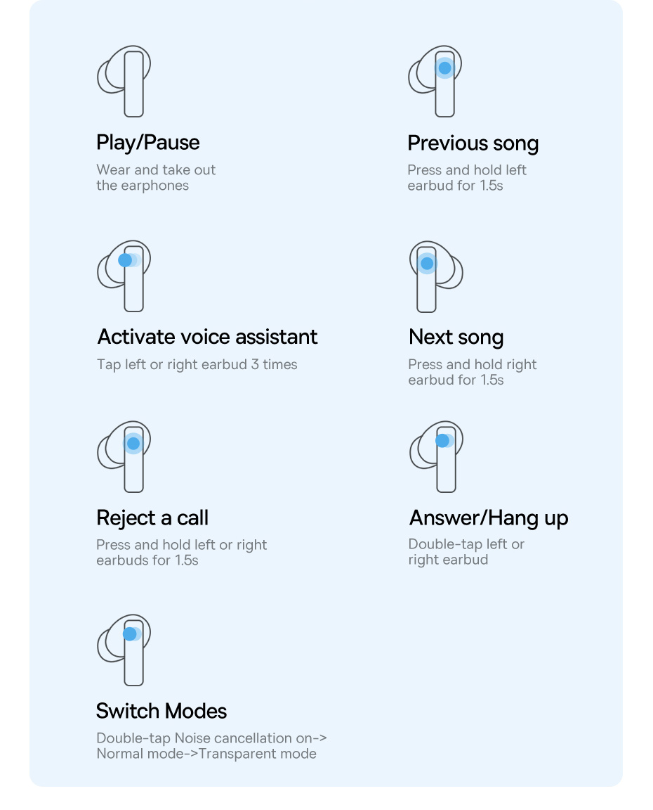 Chế độ xuyên âm: Nghe âm thanh xung quanh mà không cần tháo tai nghe.