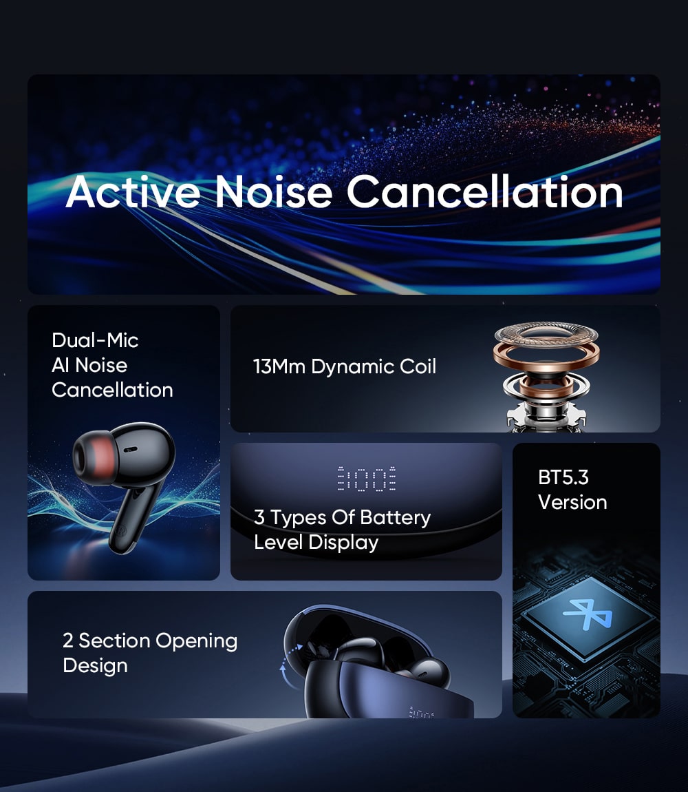 🎧 CHỐNG ỒN KÉP ANC & ENC - TĨNH LẶNG ĐỂ NGHE, RÕ RÀNG ĐỂ NÓI: Trải nghiệm sự yên tĩnh toàn diện.